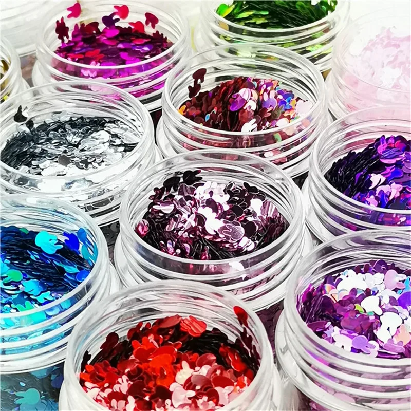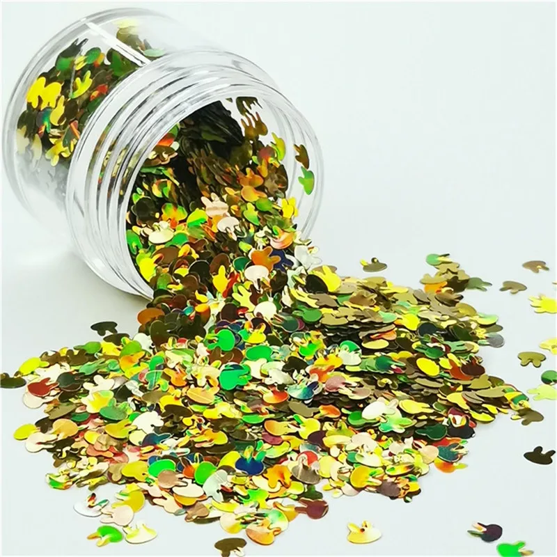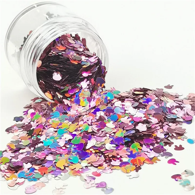 Ультратонкие Блестящие Блестки в форме кролика 4 мм, блестки для ногтей, искусства, маникюра, свадьбы, Рождества, конфетти, 8 г
