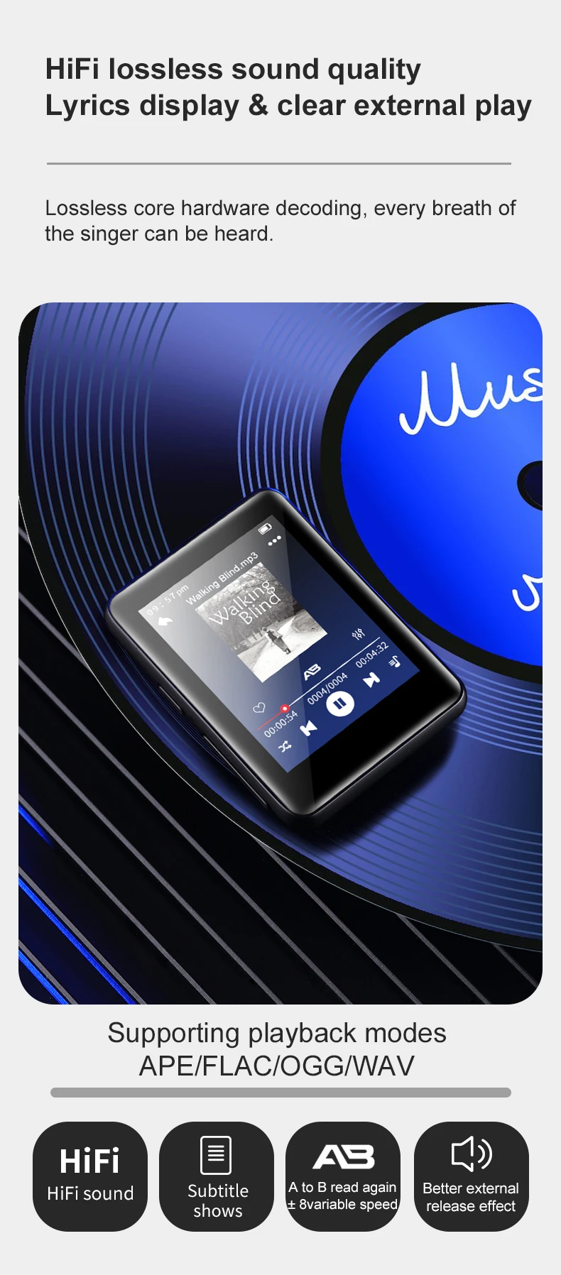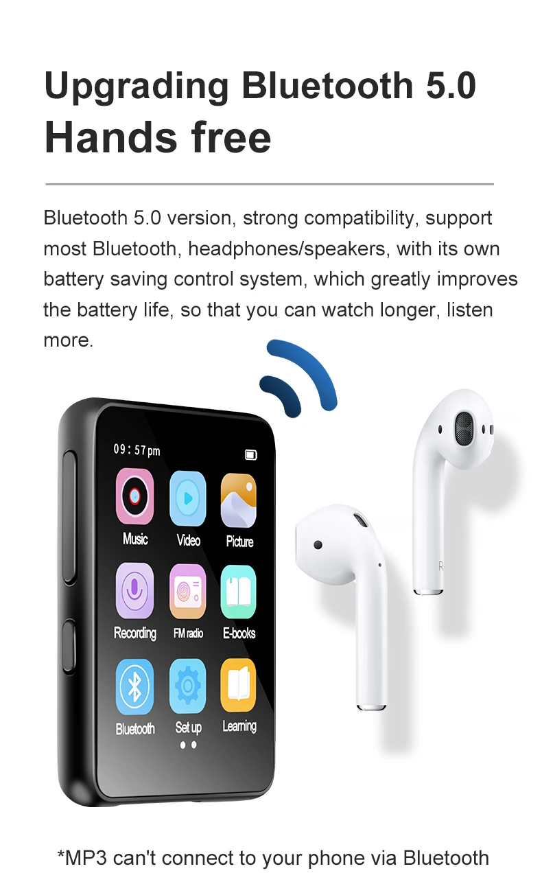 Ультратонкий Bluetooth 5.0 Mp3 Mp4 WalkmanWo