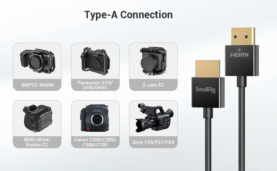 Камеры, мониторы, беспроводные видеопередатчики и приемники, и другие устройства с Полноразмерным портом HDMI, как для BMPCC 4K & 6K, для Panasonic S1H/GH5/GH5S, для Z-cam E2, для Atomos Ninja V, для Hollyland Mars 400 и т. Д.