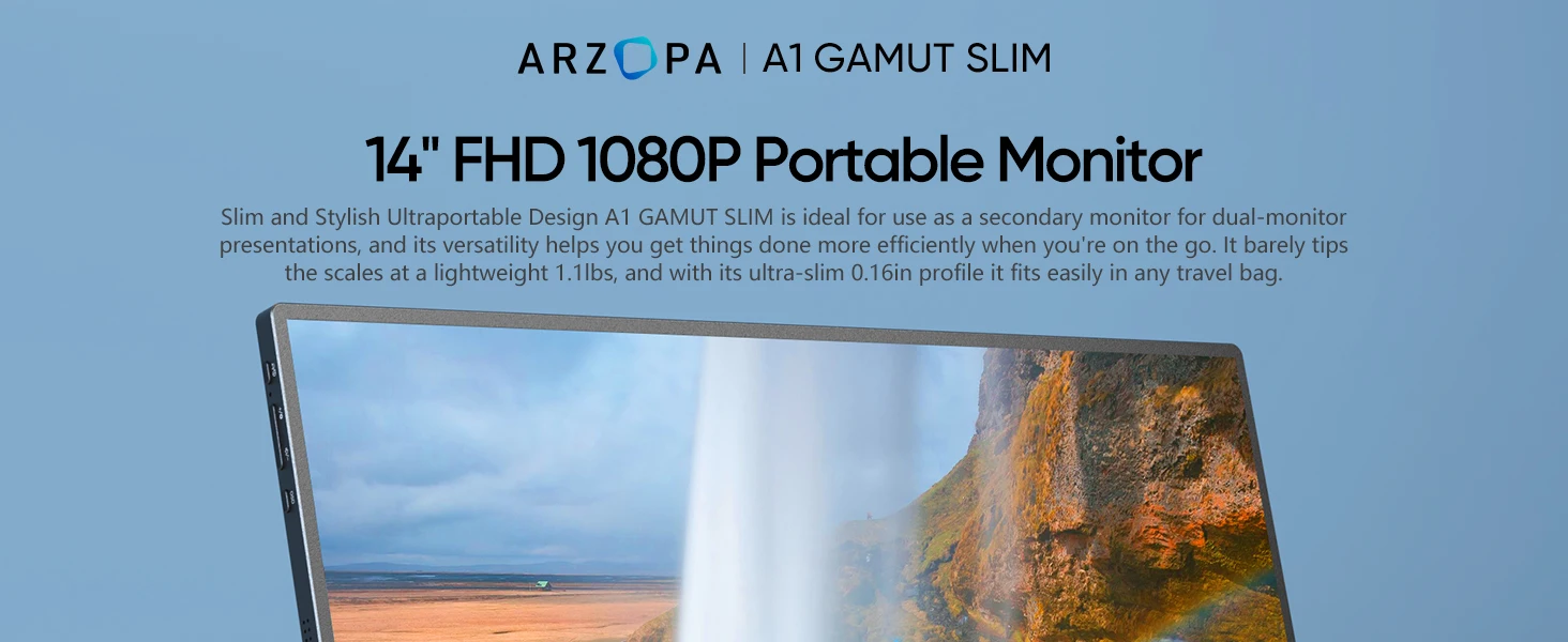 Тонкий и стильный Ультрапортативный дизайн A1 GAMUT SLIM идеально подходит для использования в качестве дополнительного монитора для презентаций с двумя мониторами, а его универсальность помогает вам делать вещи более эффективно, когда вы находитесь в дороге. Это едва советы