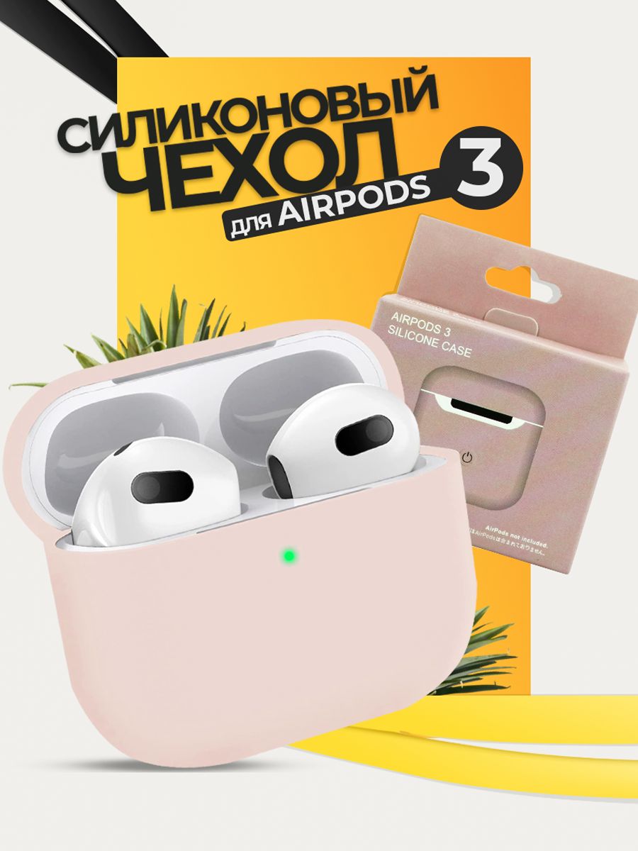 Ультратонкий силиконовый чехол для Apple AirPods 3 / Защитный чехол на кейс для беспроводных наушников / Розовый песок