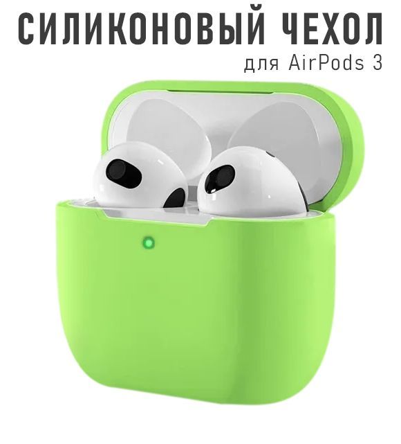 Ультратонкий силиконовый чехол KRISTANAM для наушников Apple AirPods 3 / противоударный кейс для наушников AirPods 3 , зеленый, салатовый