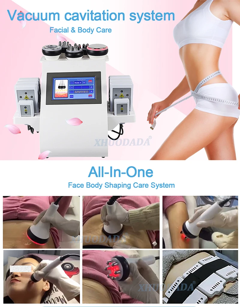 Ультразвуковая кавитационная вакуумная радиочастотная лазерная установка для похудения, 6 в 1, 40 К, 8 аппаратов