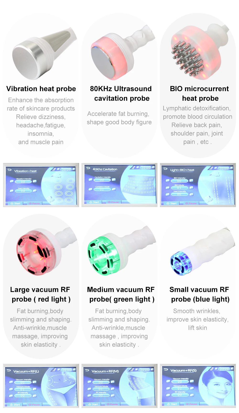 1. Ультразвуковая высокочастотная вибрация, мгновенно пробуждает кожу клеток внутри, улучшает метаболизм клеток, способствует секомпозиции жировых блоков, углубляет лимфатические узлы.