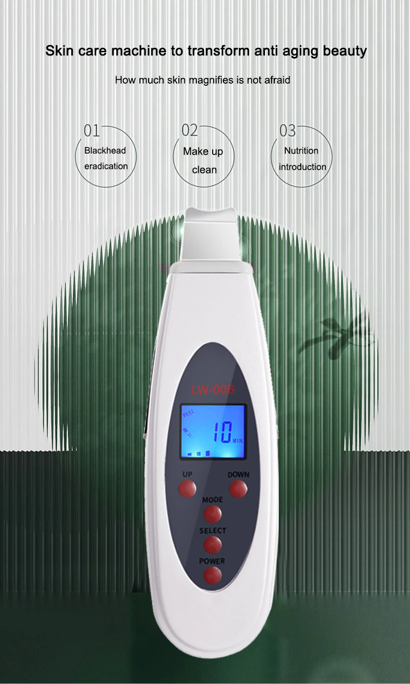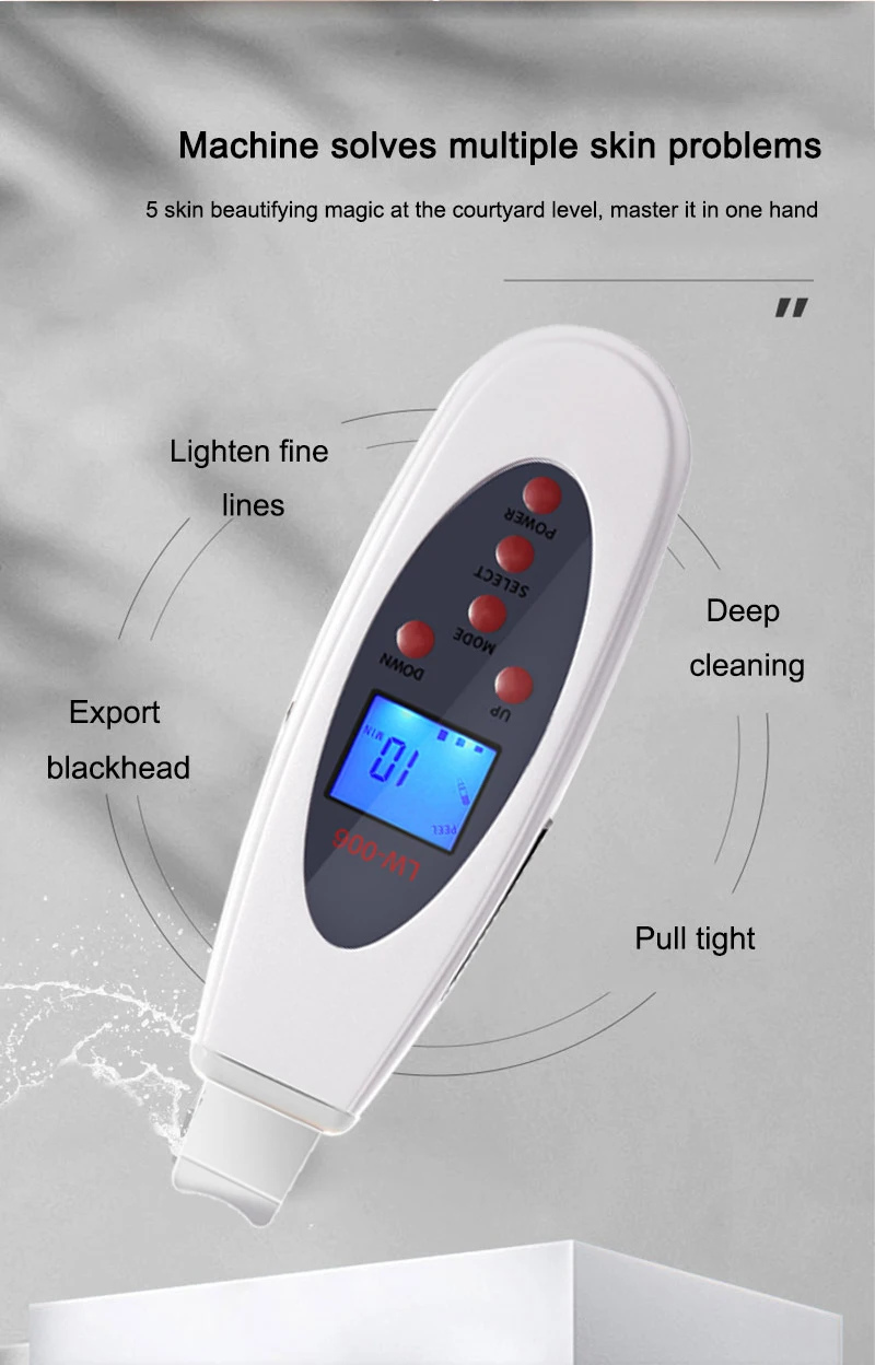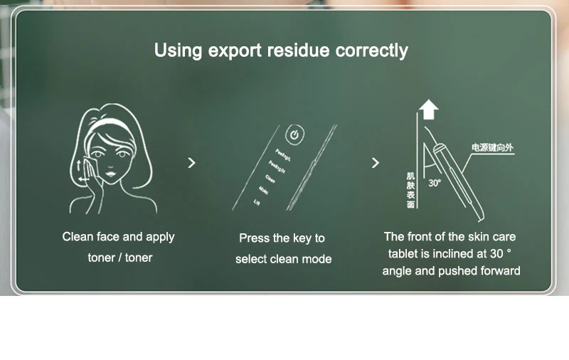 How it works: The water is instantly atomized by ultrasonic waves, the atomized water enters the deep layers of the skin to remove dirt, and at the same time adjusts the balance of water and oil, so as to achieve the effect of cleaning pores, removing blackheads and cleansing the skin.