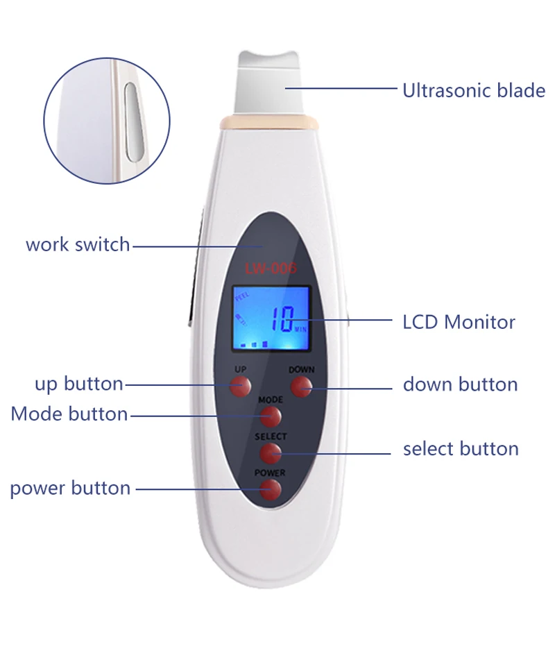 Ультразвуковой скрабер для кожи, глубокий рефрижератор, массажер для лица, ультразвуковой пилинг, чистый тон, лифтинг, LW006