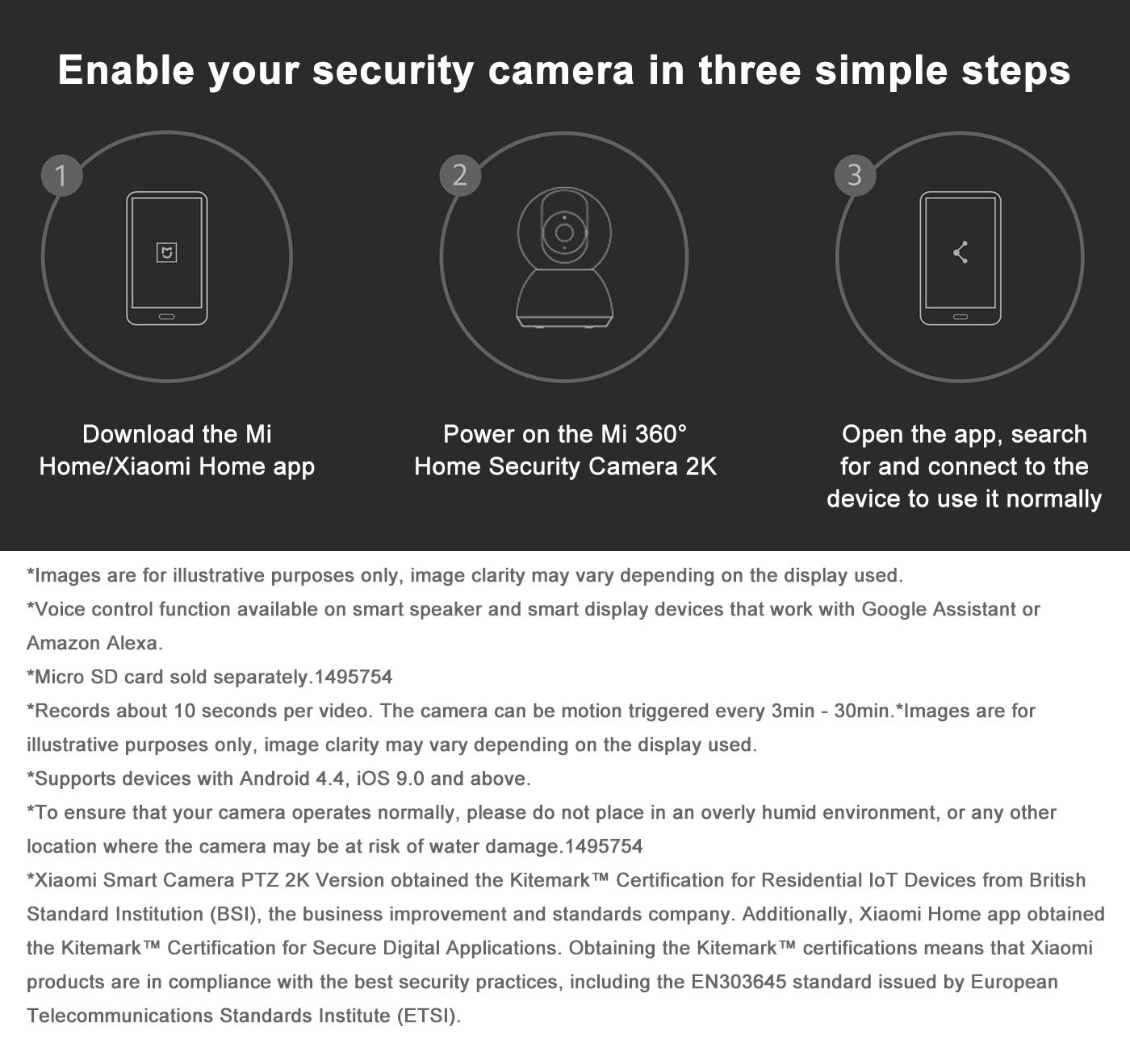 1x/4x/16x воспроизведение скорости через приложение Mi Home/Xiaomi Home для истории видео, хранящегося на Micro SD-карте. Экономьте время и усилия с помощью быстрого и удобного просмотра.BSI Kitemark™Сертифицировано *