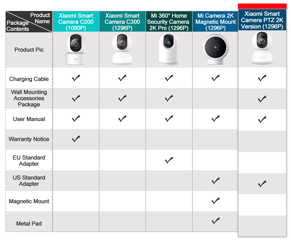 Ниже приведены параметры Xiaomi Smart Camera PTZ 2K версии: