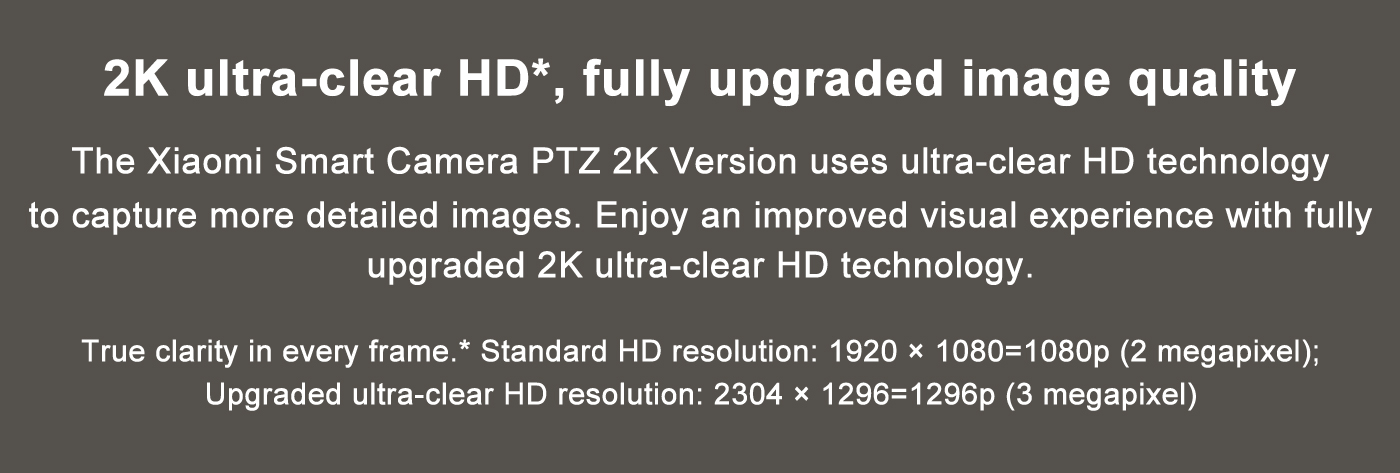 В версии Xiaomi Smart Camera PTZ 2K используются сверхчеткие технологии HD для съемки более подробных изображений. Наслаждайтесь улучшенным визуальным опытом с полностью модернизированной технологией 2K ultra-cleae HD,
