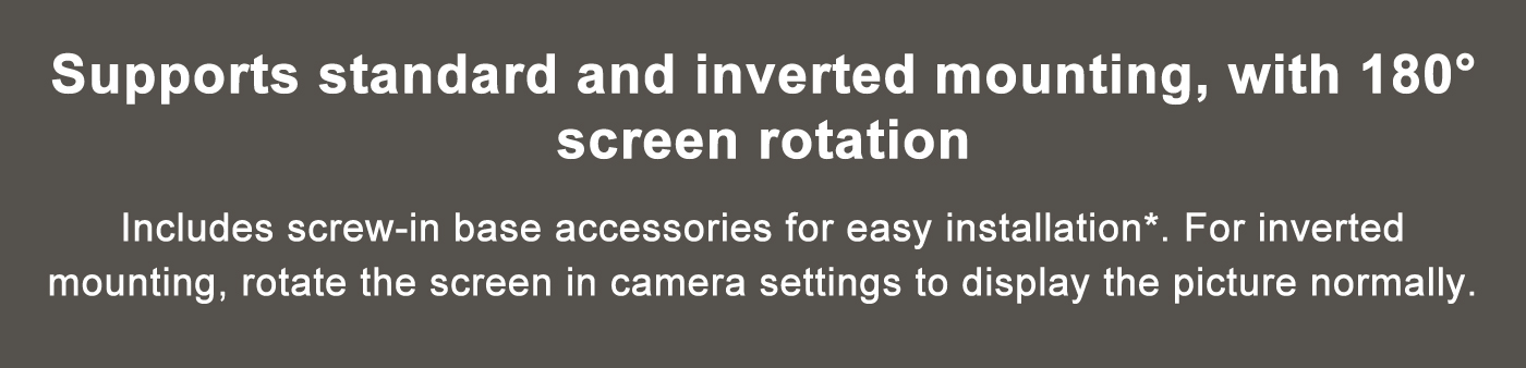 Настраиваемый режим снаSupprts стандартный и перевернутый монтаж, с поворотом экрана на 180 °