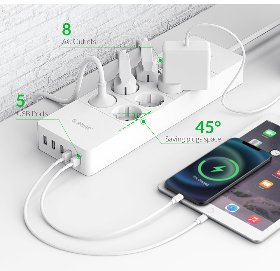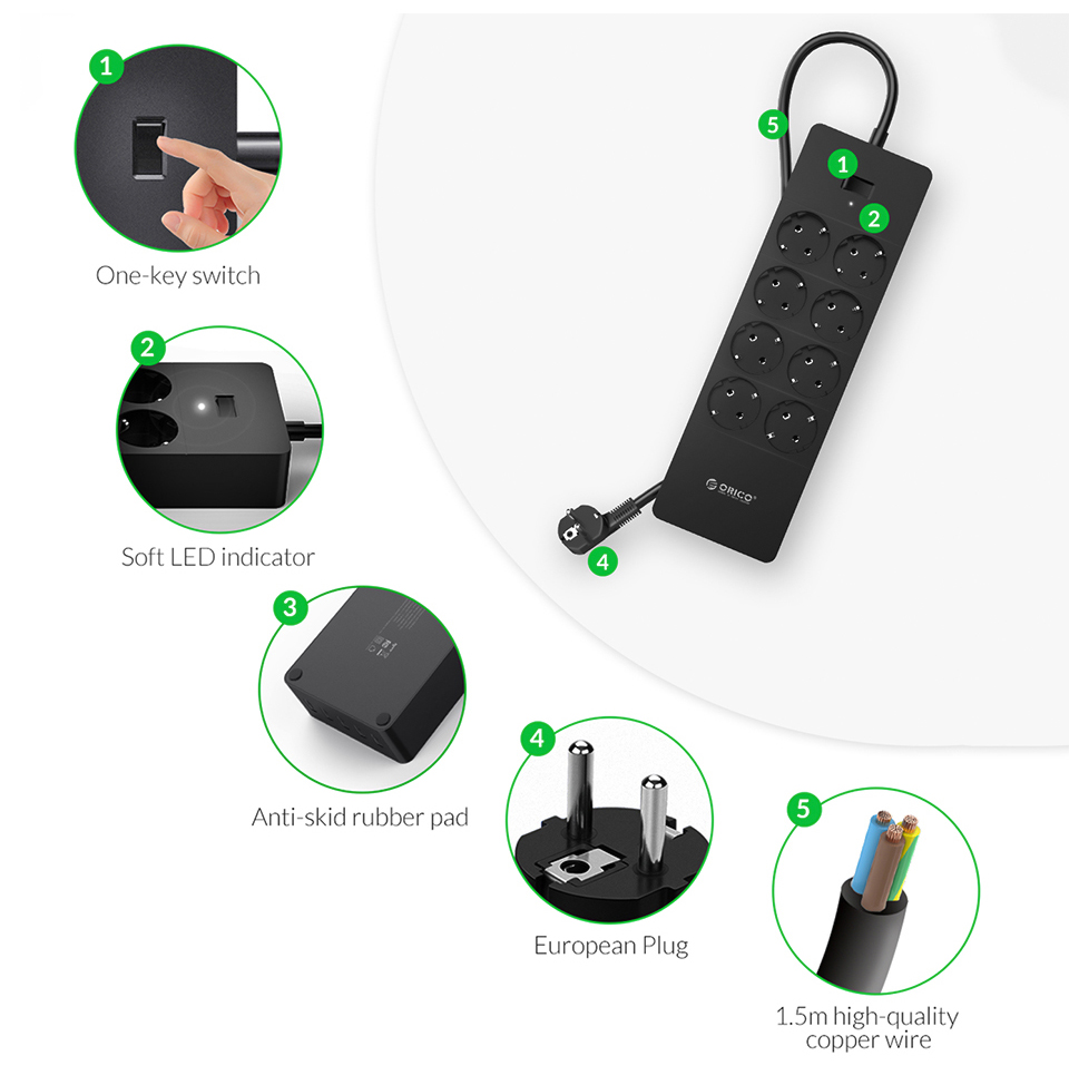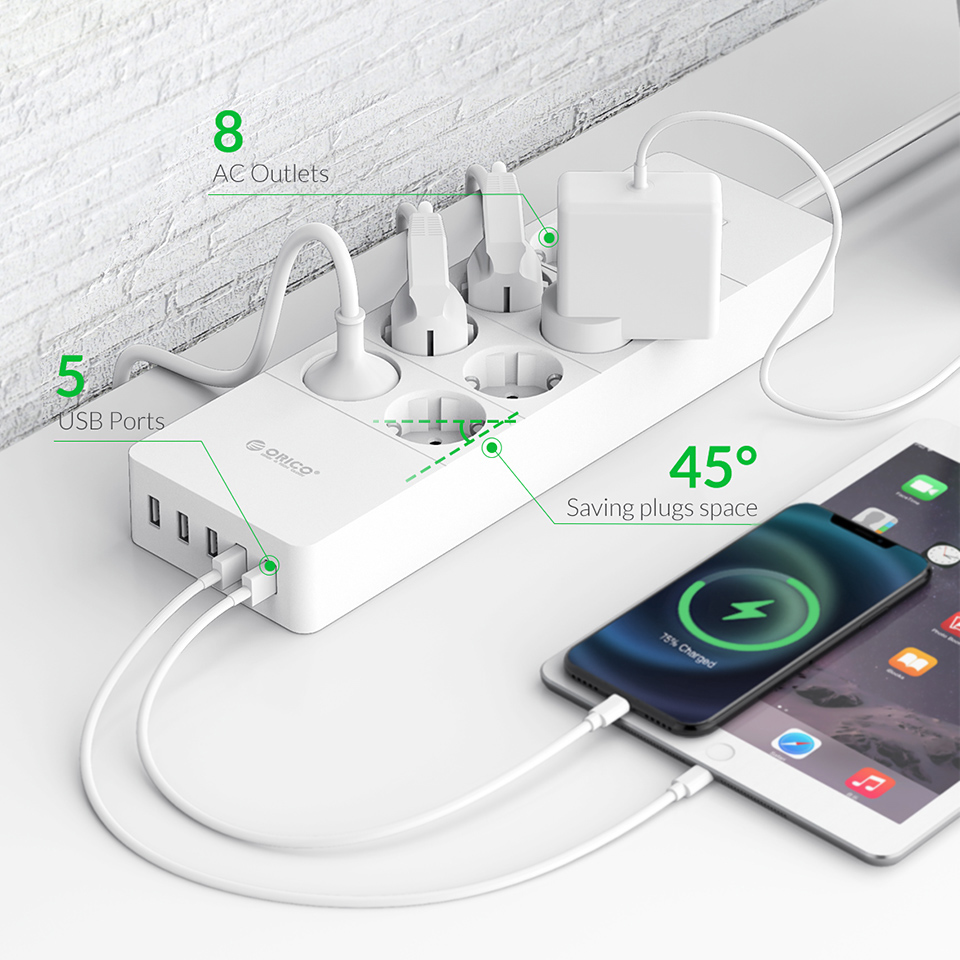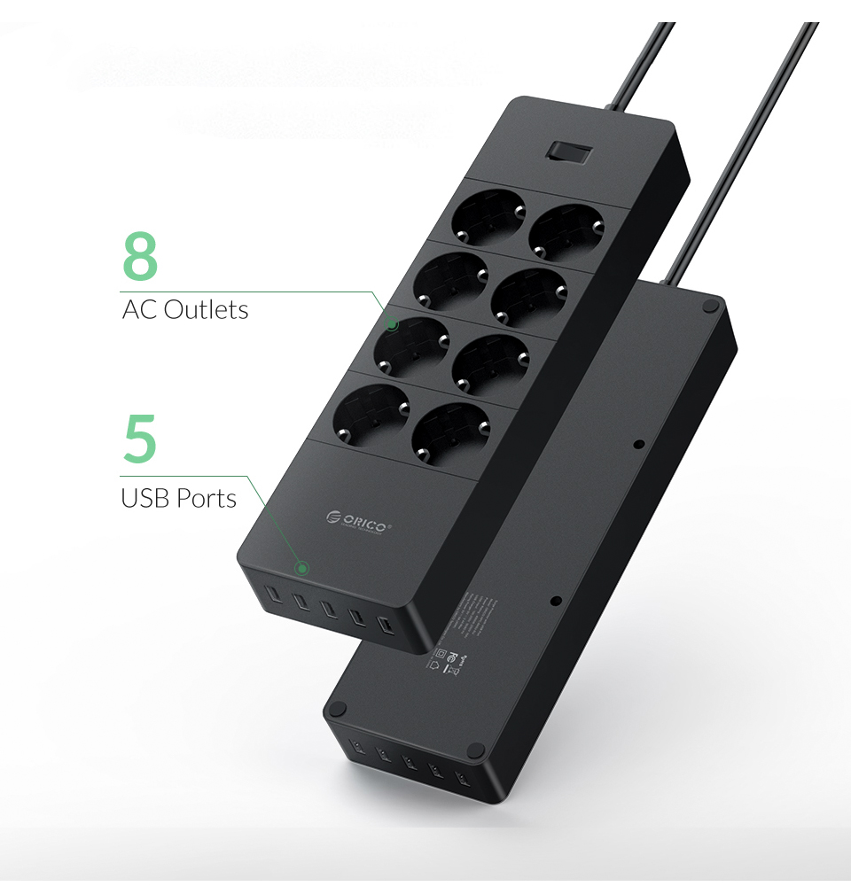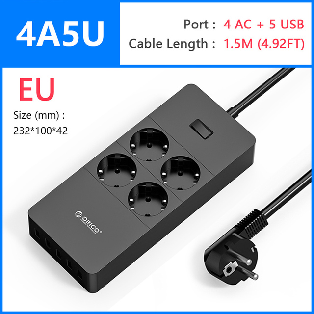 Умная электрическая розетка ORICO, многофункциональная розетка переменного тока, адаптер удлинителя, несколько портов USB, защита от перенапряжений, удлинительный кабель 1,5 м, ЕС, Великобритания