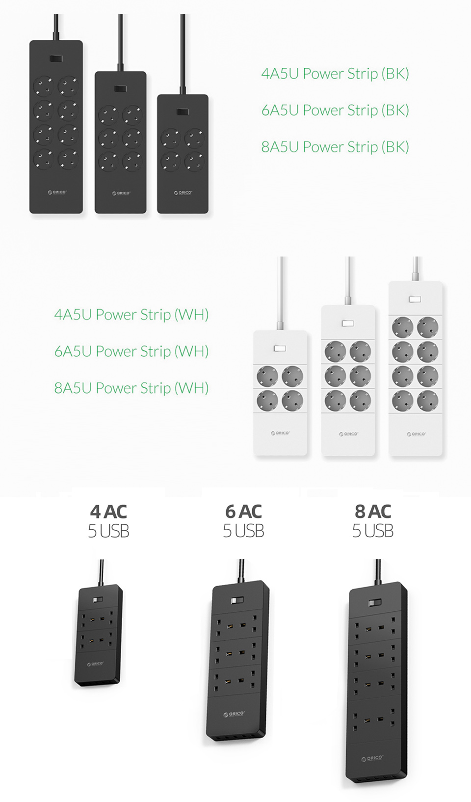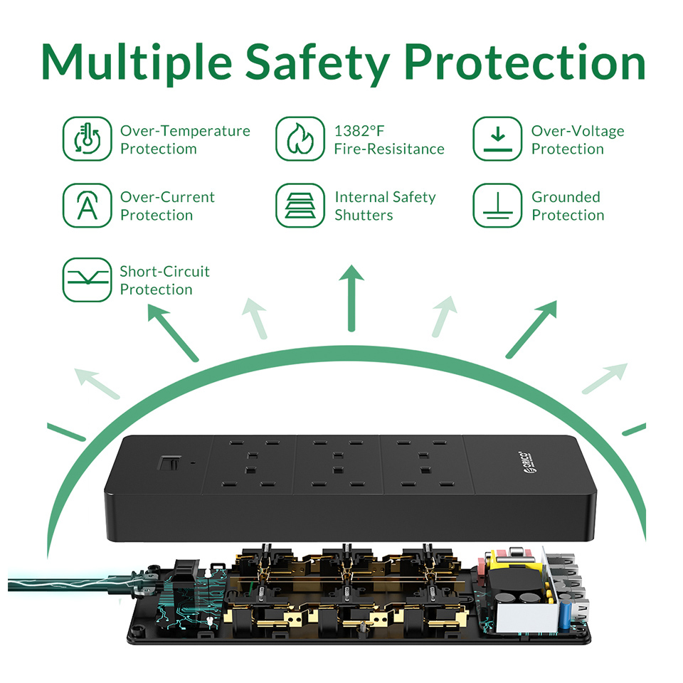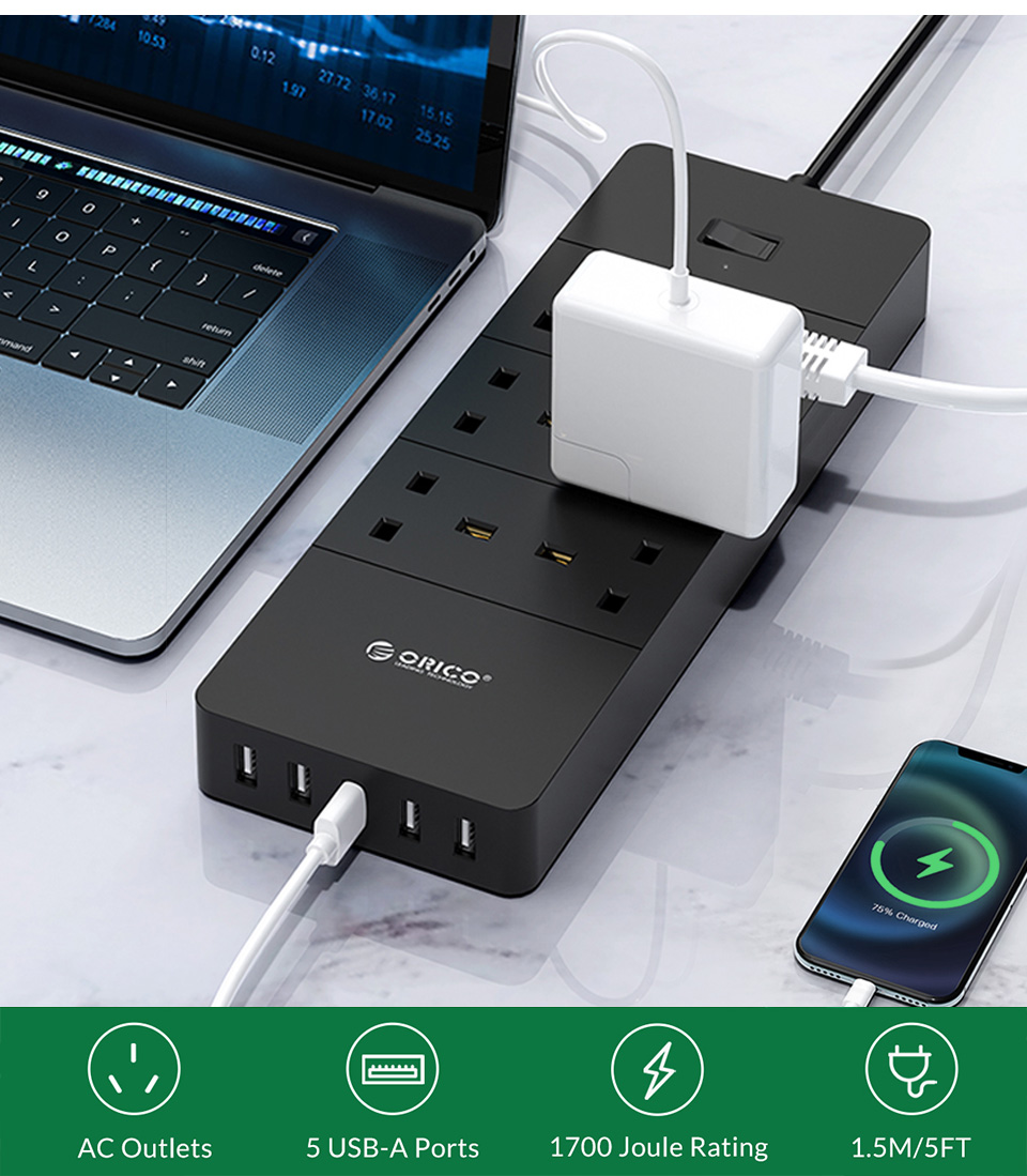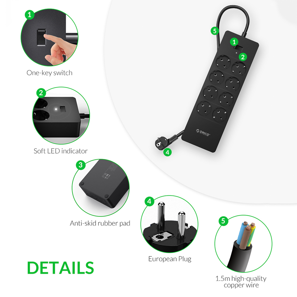 Умная электрическая розетка ORICO, многофункциональная розетка переменного тока, адаптер удлинителя, несколько портов USB, защита от перенапряжений, удлинительный кабель 1,5 м, ЕС, Великобритания