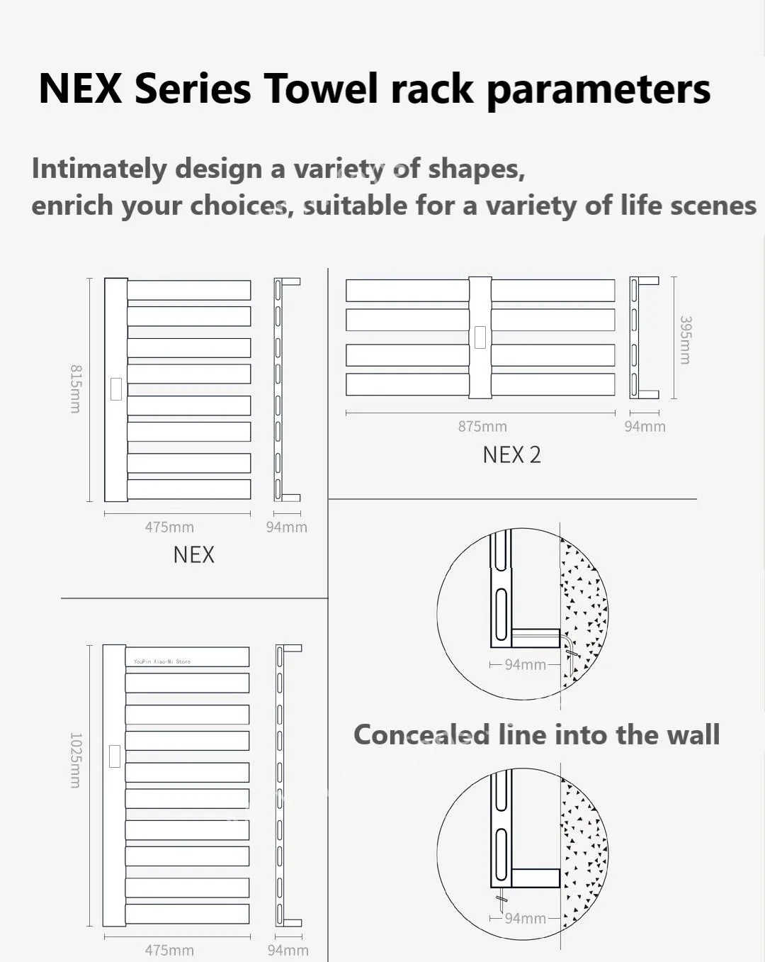 Умная электрическая вешалка для полотенец, серия NEX, умное удаление глубоких клещей, IPX4, водонепроницаемая Скрытая работа с MiHome