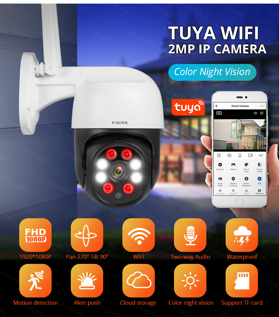 Fuers 1080P 3-мегапиксельная IP-камера Tuya умная наружная Домашняя безопасность автоматическое отслеживание камера обнаружения человека WIFI камера видеонаблюдения
