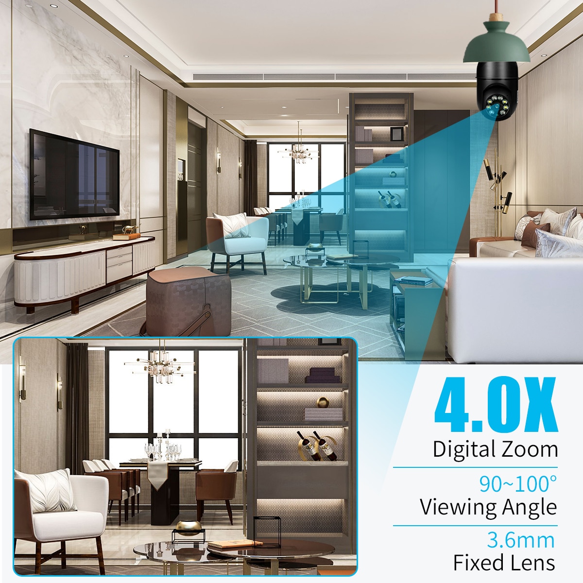Умная камера видеонаблюдения с ночным видением, Wi-Fi, 4-кратным зумом