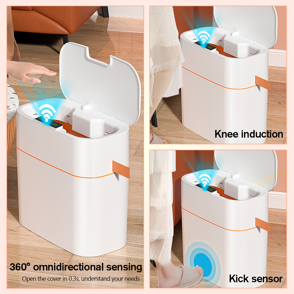 【Умный мусорный бак с крышкой】Этот умный мусорный бак с крышкой незаменим на любой кухне. Вы можете открыть его с помощью чувства колена или размахивания рукой. Не нужно ни на что наступать или прикасаться, чтобы заставить его открыть прекрасный Бесконтактный мусорный бак.