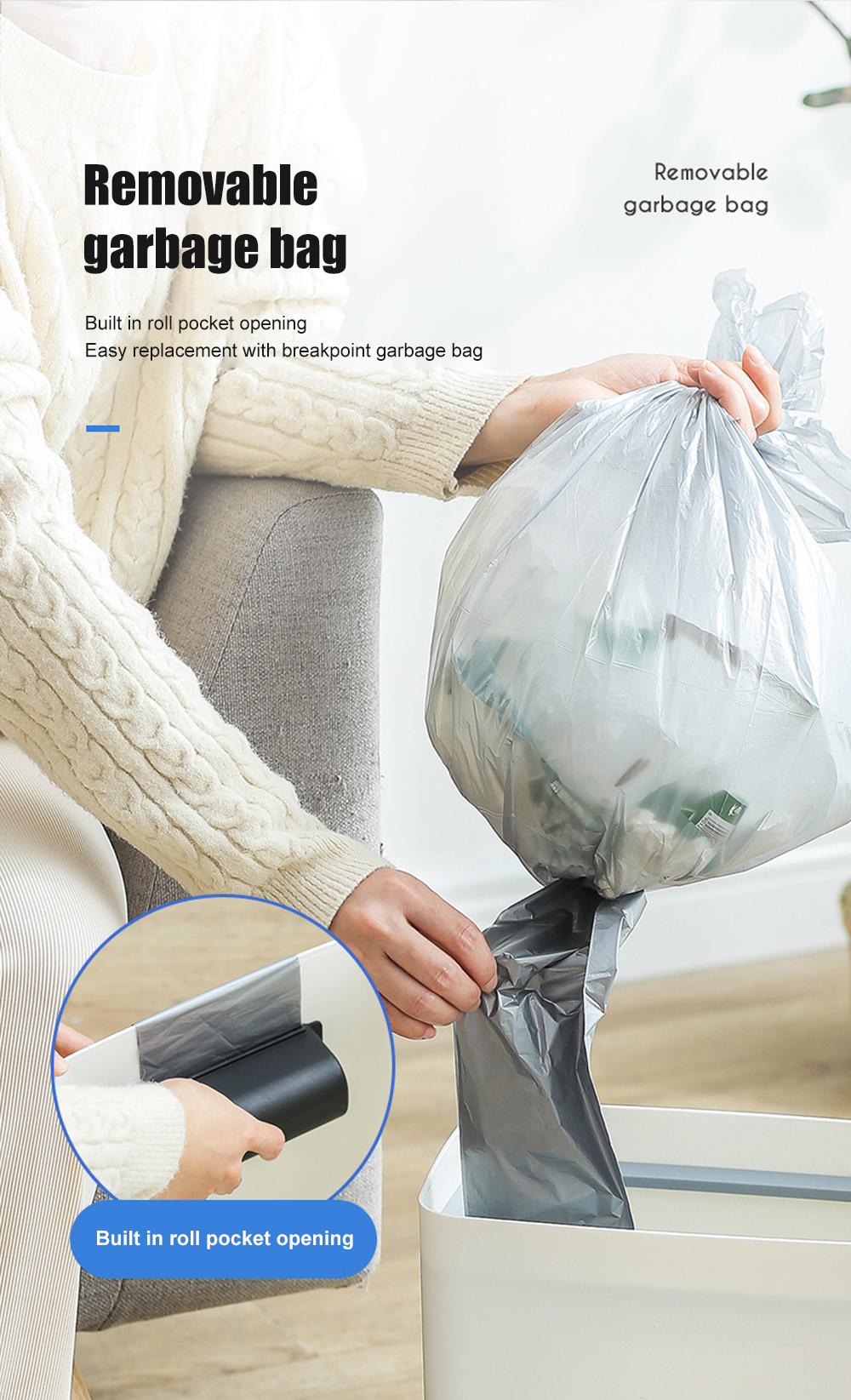 2. Встроенный светодиодный светильник и ящик для мусора, удобный и практичный.