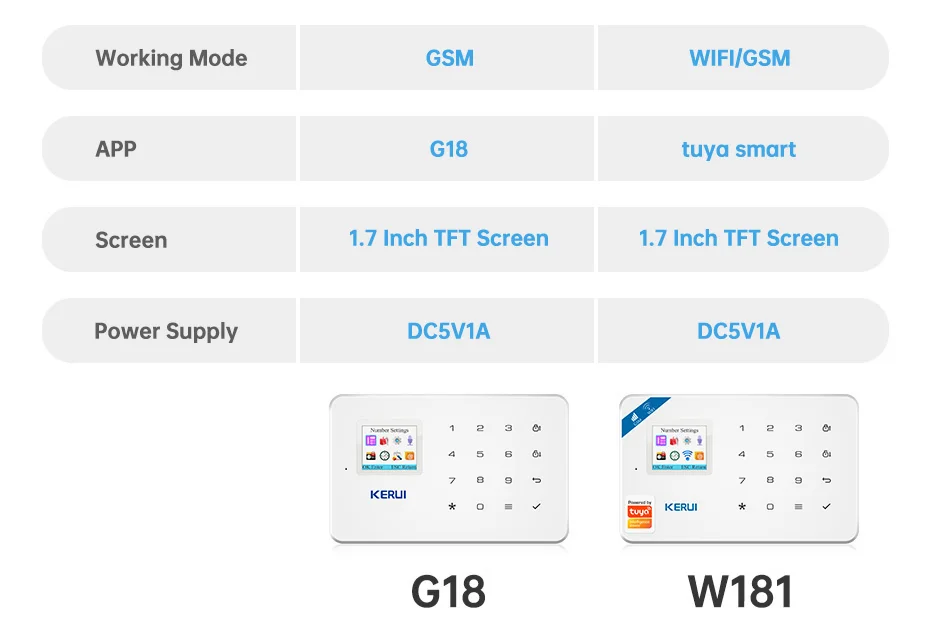 1.KERUI W18 использует только 2G sim-карты (850/900/1800/1900 МГц), и друзья из США и Австралии, пожалуйста, свяжитесь с нами.