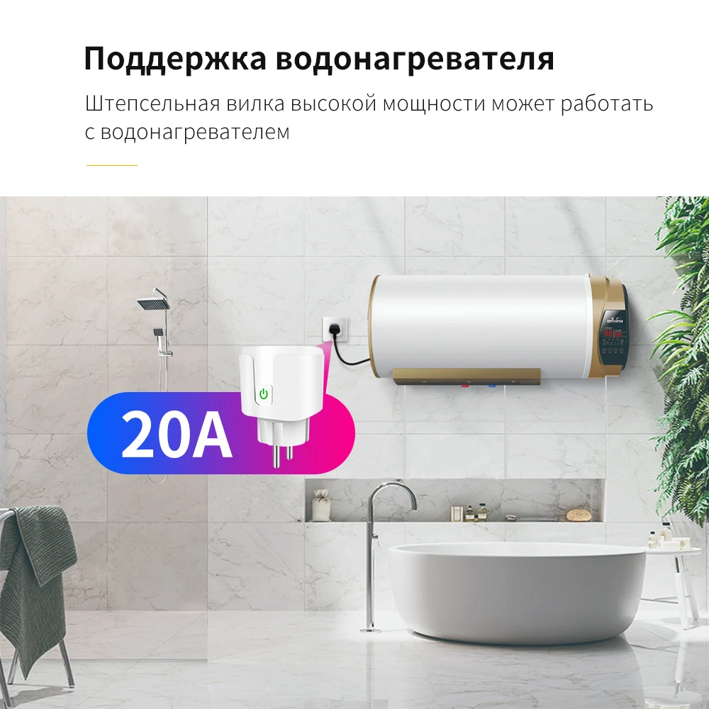 Умная розетка CORUI Tuya с Wi-Fi, ЕС, 20 А, монитор питания, 220 В, функция таймера, умное управление жизнью, работа с Alexa Google Home Alice