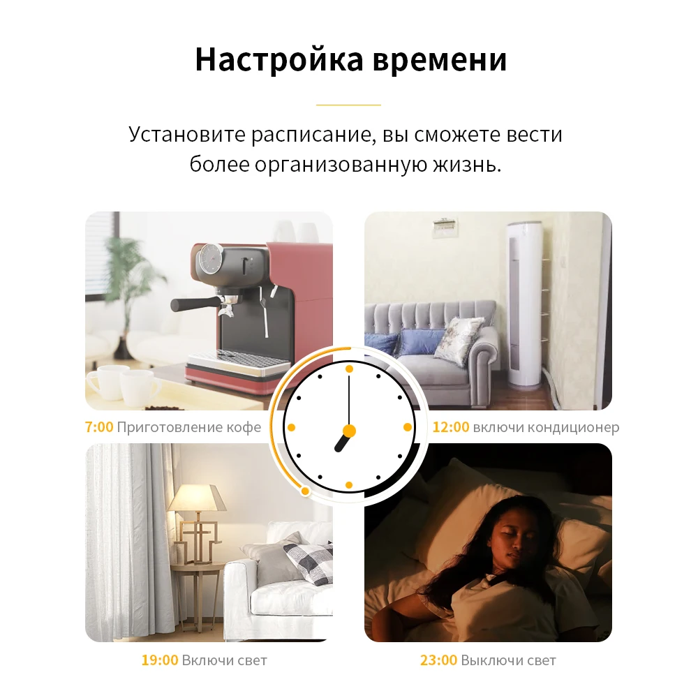 Включите и выключите подключенное устройство в указанное время. Запланируйте включение вентилятора в гостиную по утрам или Запланируйте светильник вашего ребенка, чтобы выключить, чтобы сообщить, что пришло время ложиться в кровать. Функция обратного отсчета позволяет установить таймер, который автоматически выключается, поэтому вам не придется сомневаться, отключили ли вы устройство.