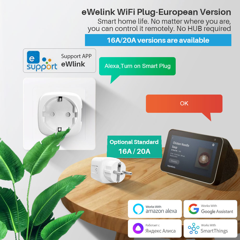 Умная розетка eWelink 16 А/20 А с поддержкой Wi-Fi и мониторинга мощности