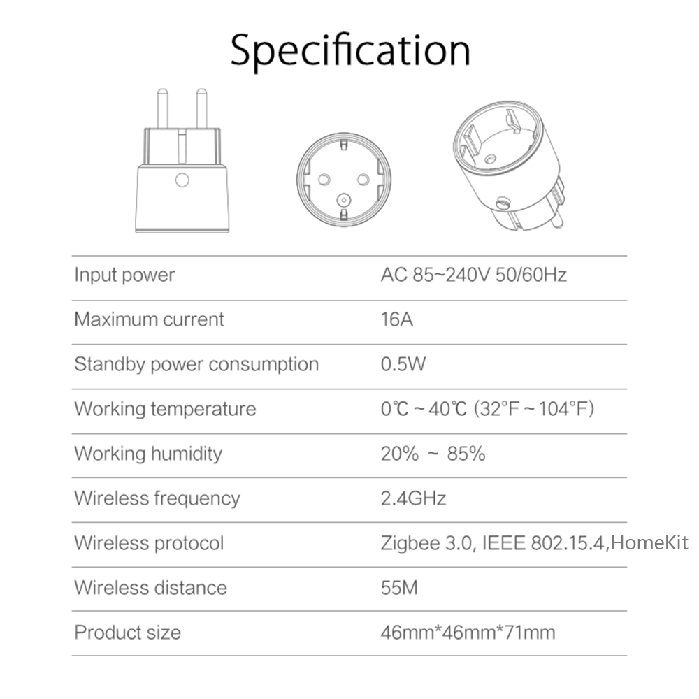 HomeKit ZigBee Plug 16A ЕС Интеллектуальная розетка работает с Apple Home/Alexa/Google Assistant/SmartThings/Tuya/SmartLife