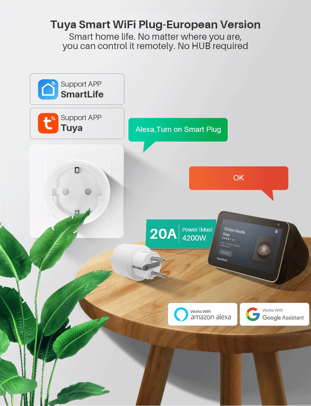 Он полностью совместим с Amazon Alexa и Google Home Assistant. Просто нужна простая Голосовая команда, и вы сможете наслаждаться удобной умной жизнью с помощью Голосового управления, когда вы сидите дома или когда у вас есть много дел.