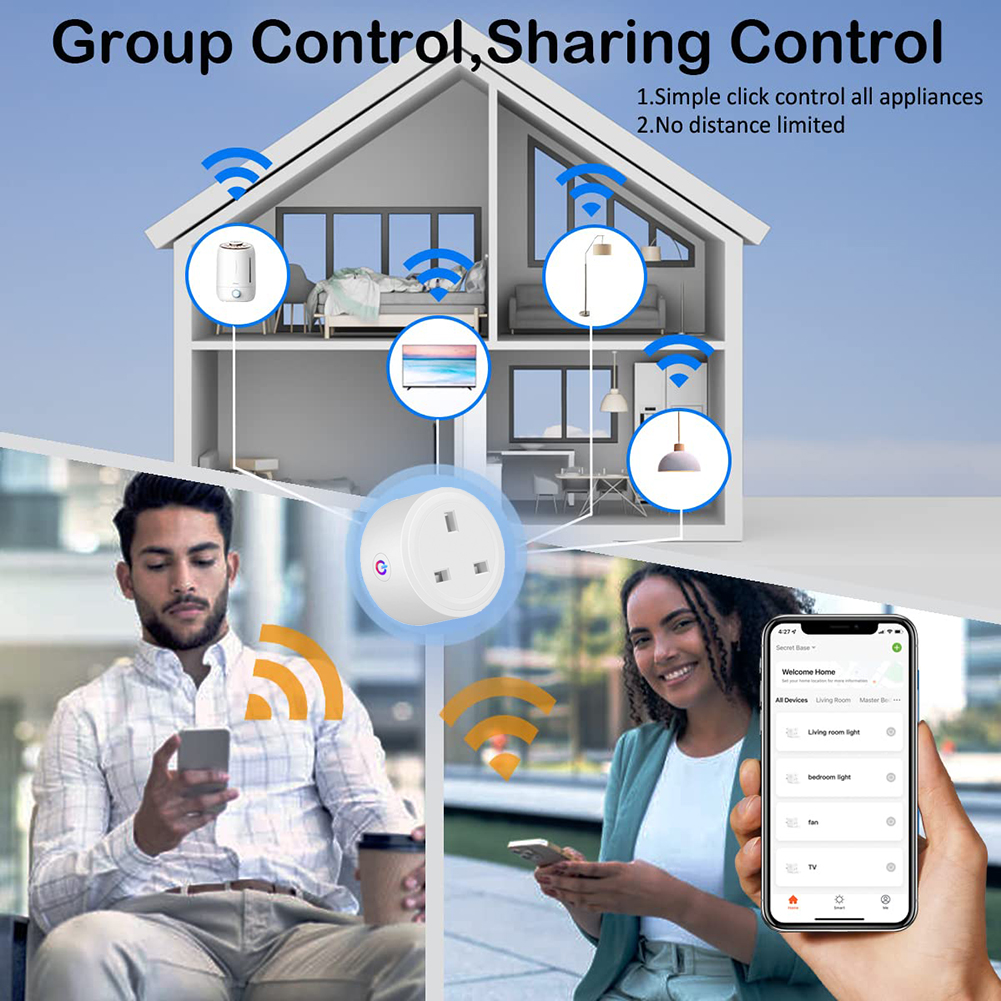 Пока розетка подключена к домашнему WiFi, мобильный телефон может проверить состояние розетки и управлять розеткой из любой точки мира.