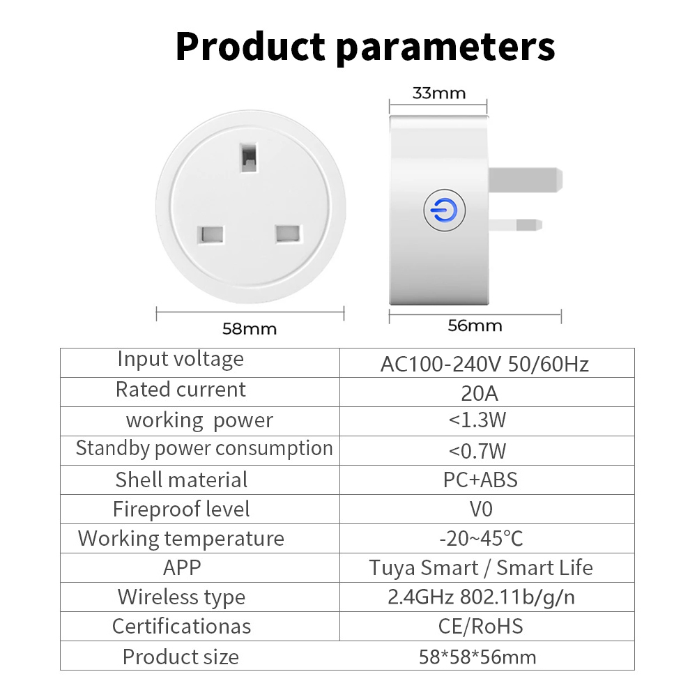 Tuya WiFi умная розетка 20A Великобритания розетка Беспроводная умная розетка монитор энергии Функция таймера работает с Alexa Google Home