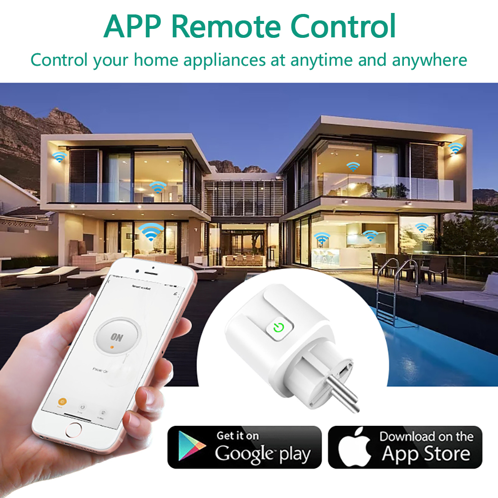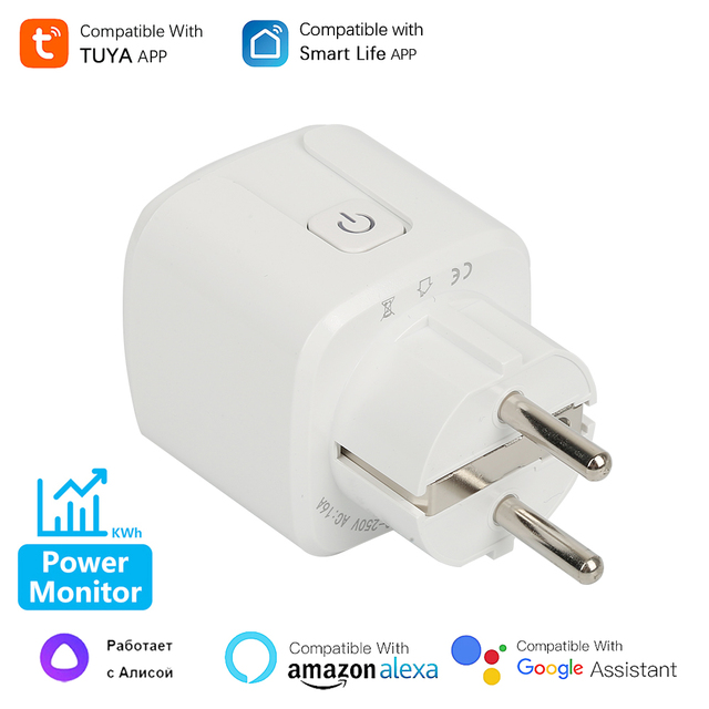 Умная розетка Tuya Wi-Fi ЕС универсальный 16А С пультом дистанционного управления Power Monitor Розетка синхронизации Работает с Яндекс Алисой, Alexa, Goole Home