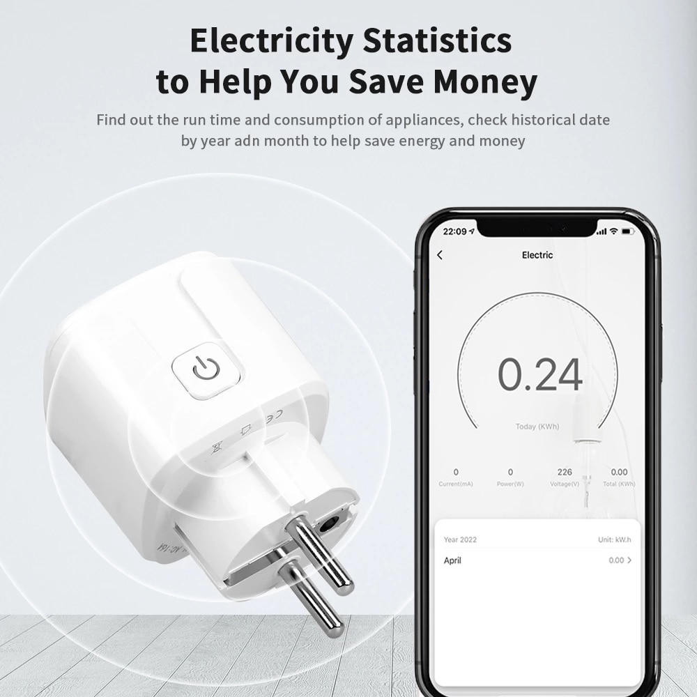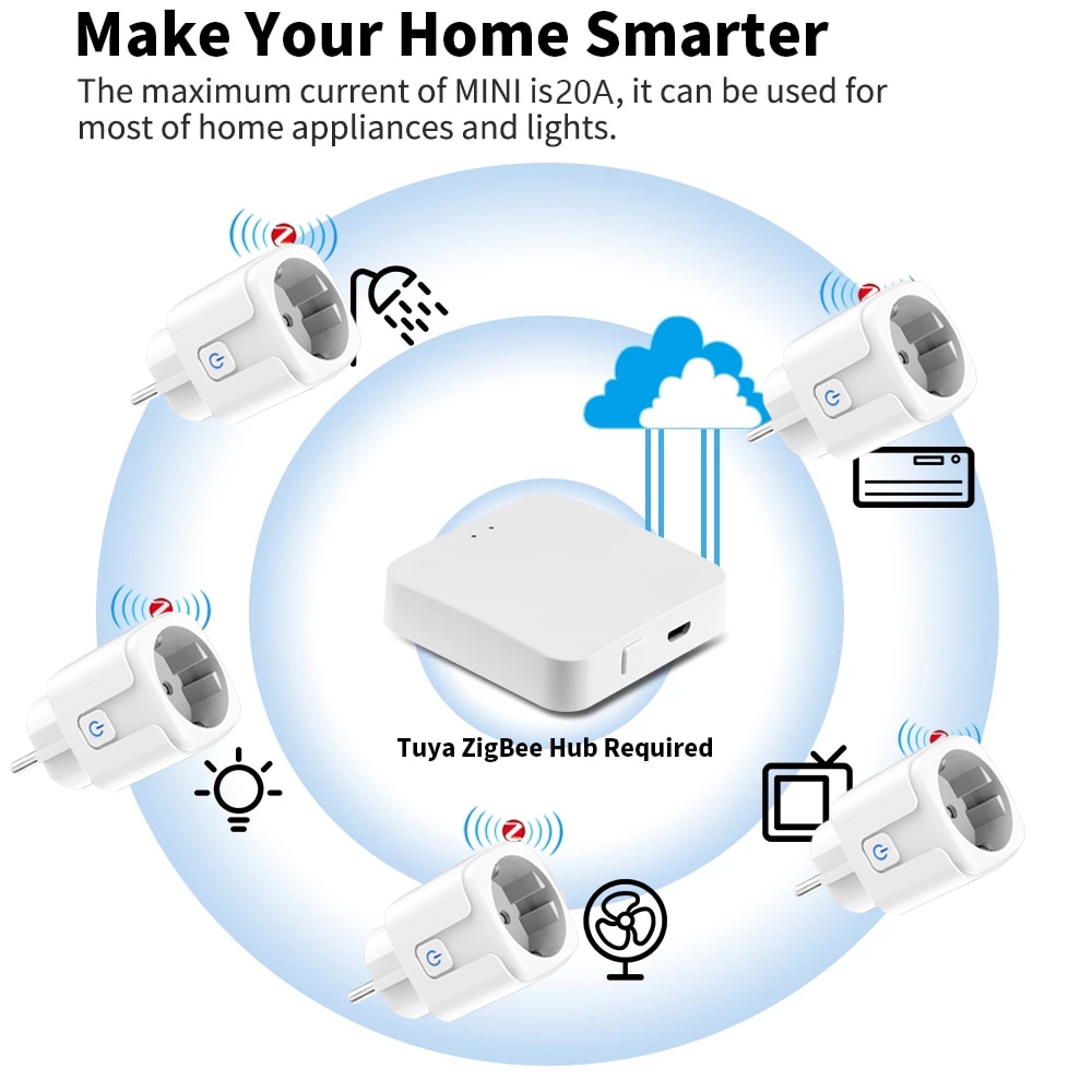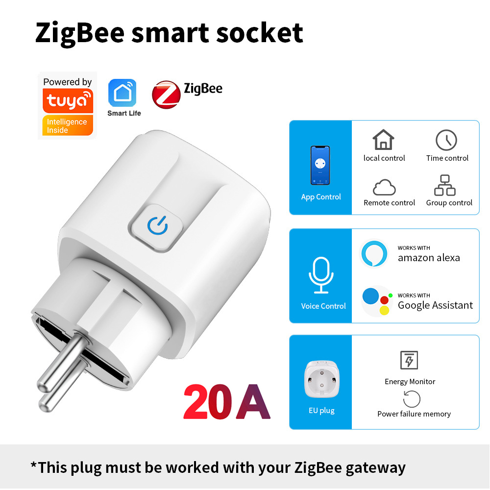 Zigbee Smart Plug 20A EU WiFi Smart Socket с функцией мониторинга мощности и синхронизации Управление приложением Tuya работает с Alexa Google Home