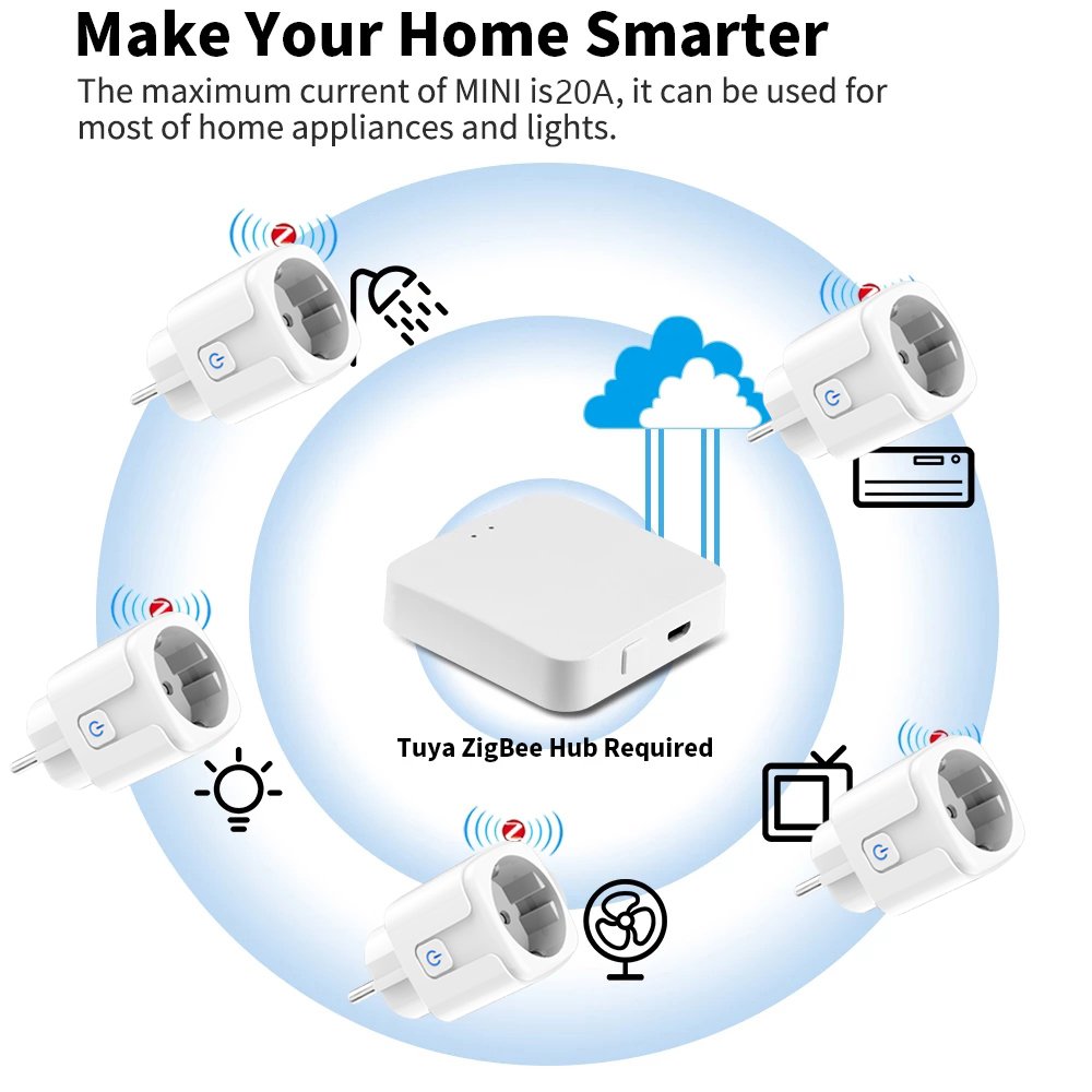 2. Умный штекер ZigBee необходимо использовать со шлюзом Tuya ZigBee.