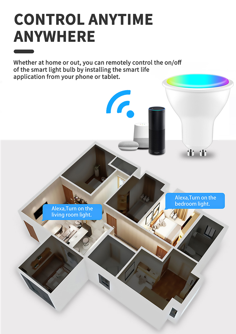 【Голосовое управление 】 вы можете управлять светильник вкл/выкл, цвет и яркость через голос Alexa/Google/Alice. Пример: "Alexa, поверните светильник в синий." -- "OK!"