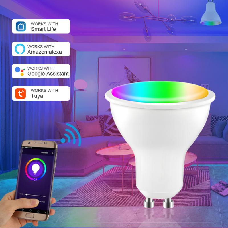 Умная Светодиодная лампа TUYA Wifi GU10 с регулируемой яркостью, RGB + CCT, 100-240 В, 4 Вт, работает с Alexa Google Home Яндекс Alice