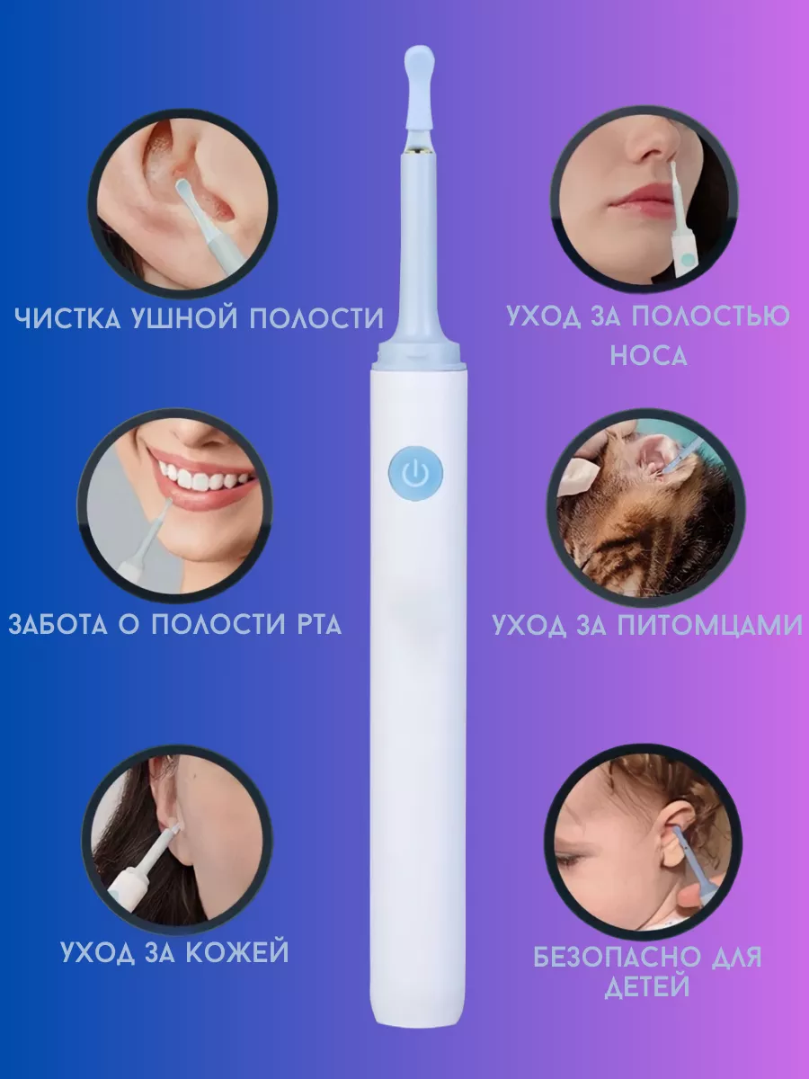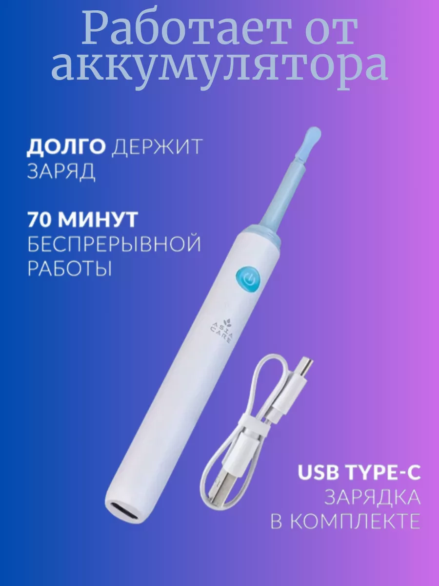 Комплектация Умная ушная палочка 1шт; Силиконовая насадка 4шт; защитный колпачок 1шт; Зарядный кабель Type-C 1шт