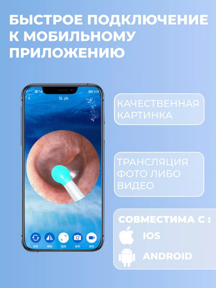 Умная ушная палочка с камерой - Отоскоп