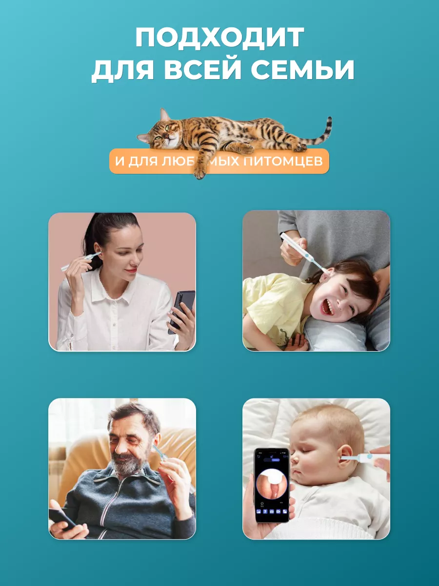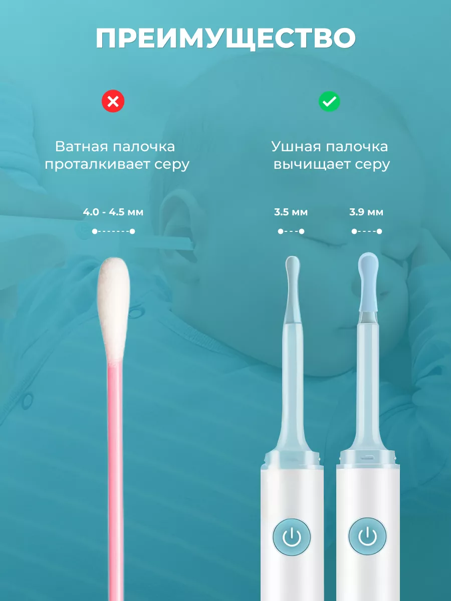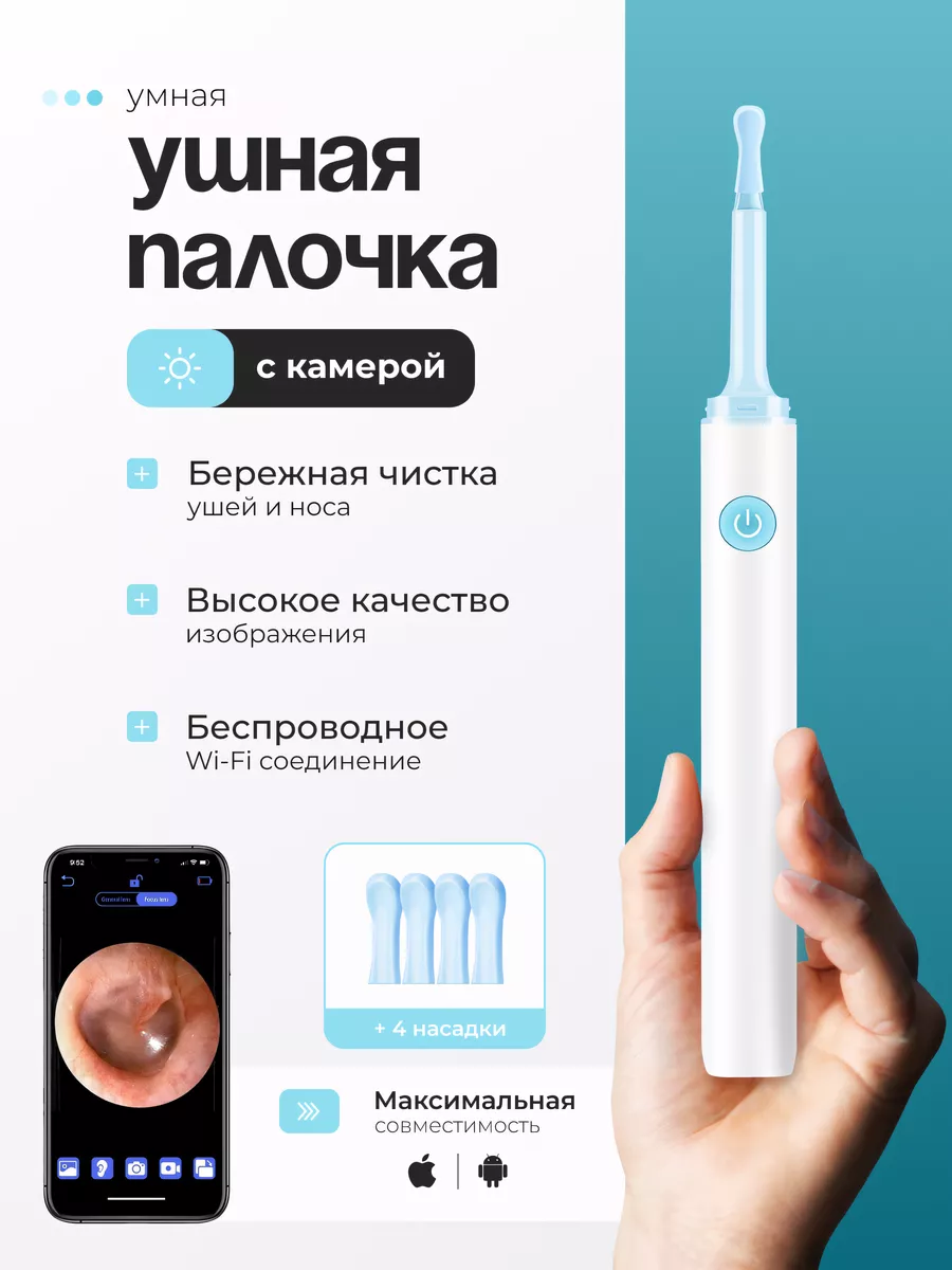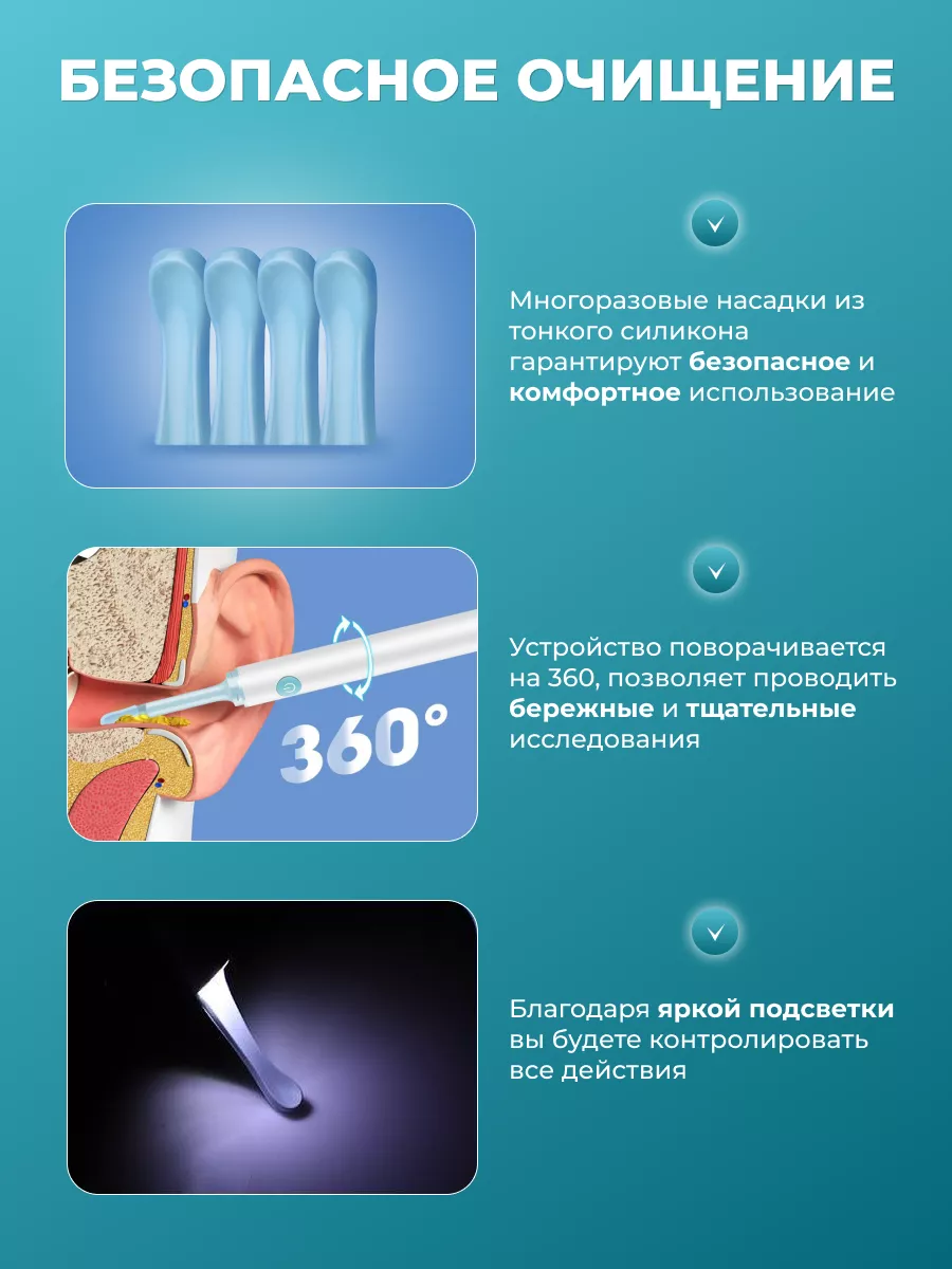 Комплектация умная ушная палочка 1 шт.; 4 сменные силиконовые насадки; кабель для зарядки type c; инструкция