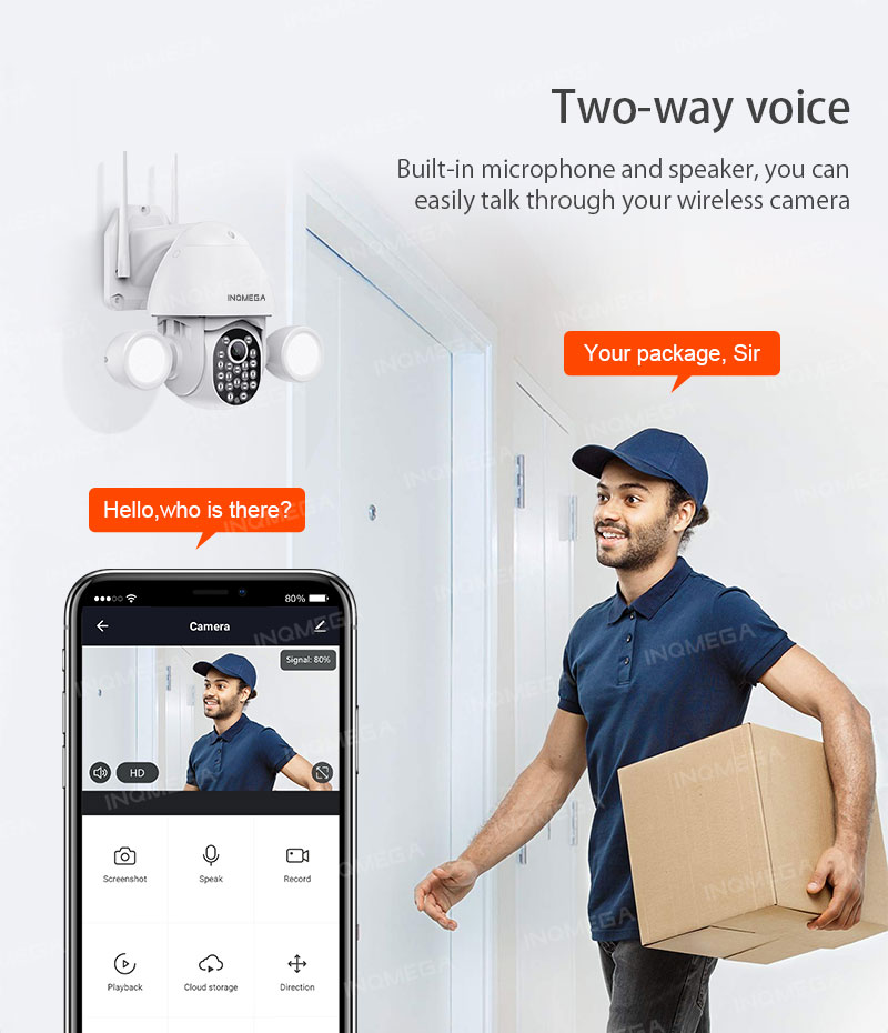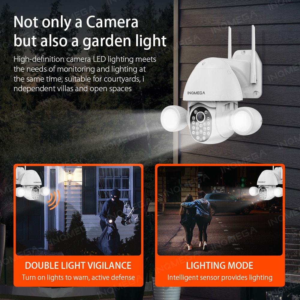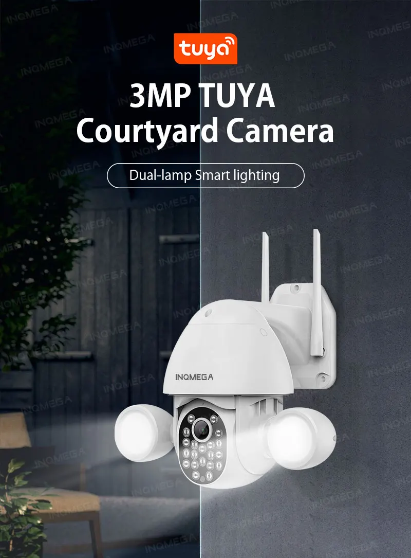 Описание: INQMEGA 3MP PTZ камера TUYA умная камера для двора Водонепроницаемая полноцветная CCTV двойная голосовая поддержка Alexa