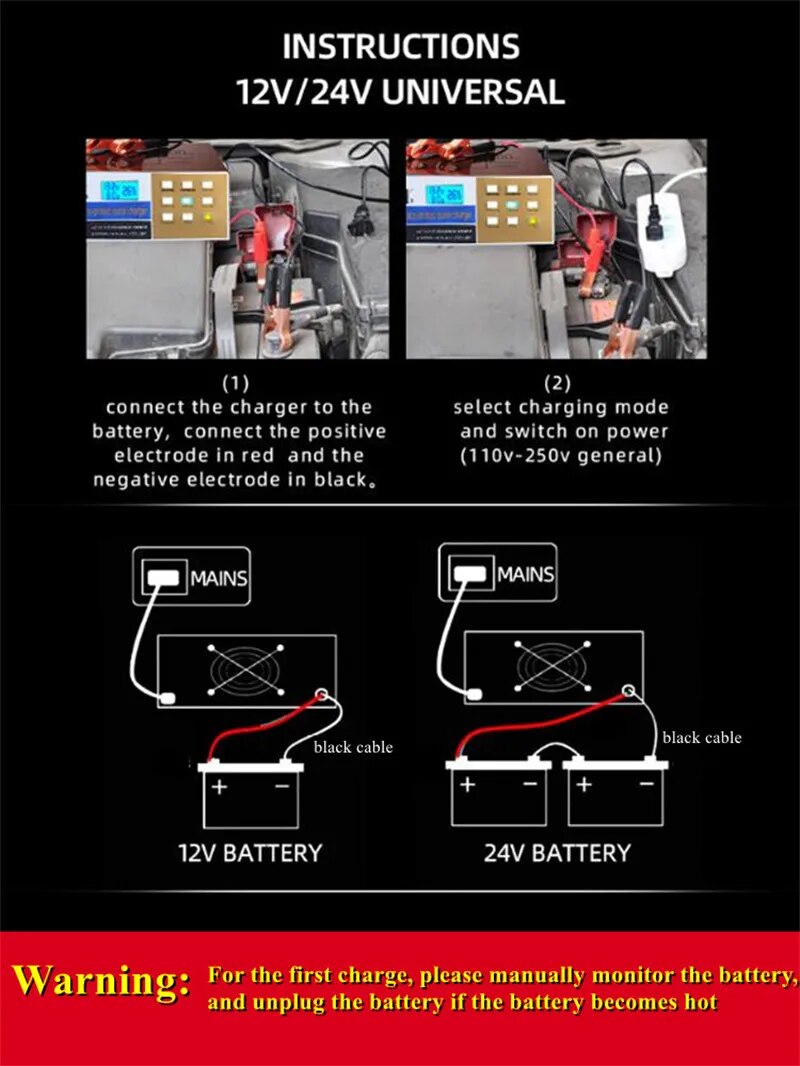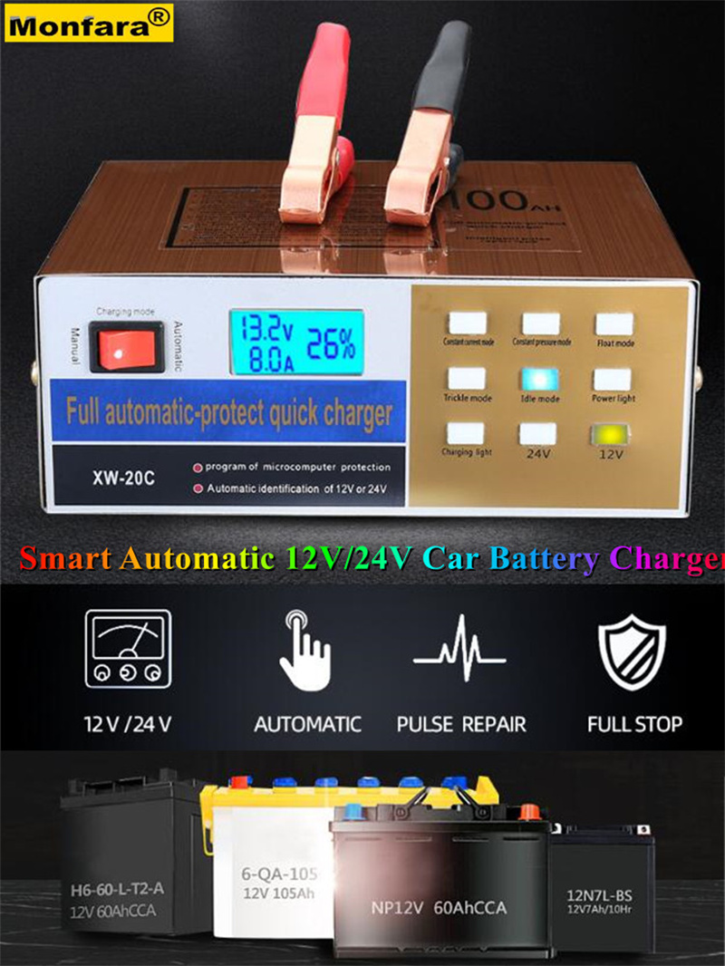 Умное автоматическое зарядное устройство для автомобильного аккумулятора, 12 В/24 В
