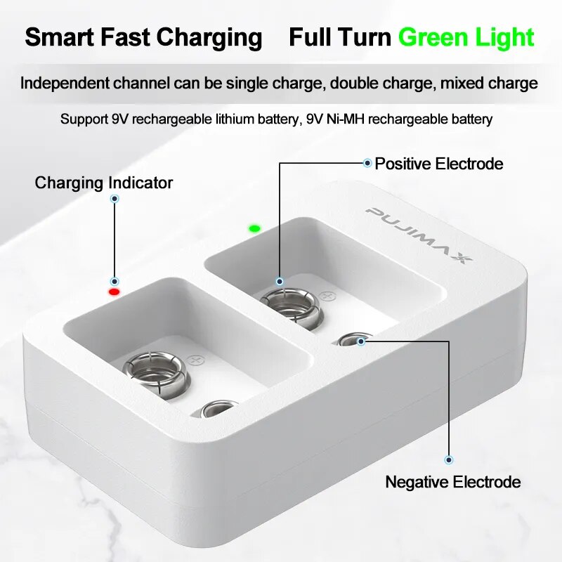 -Название продукта: умное быстрое зарядное устройство с 2 слотами 9 В