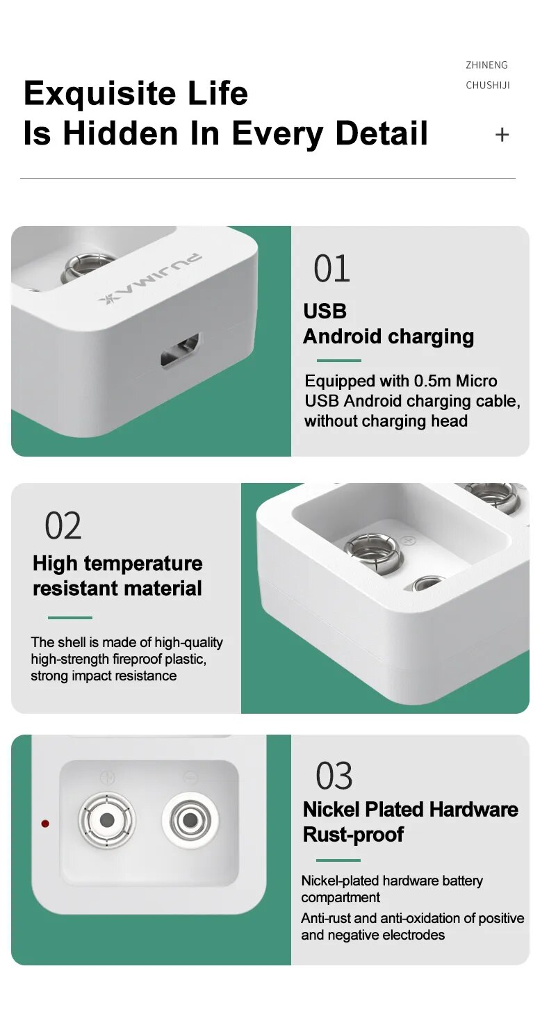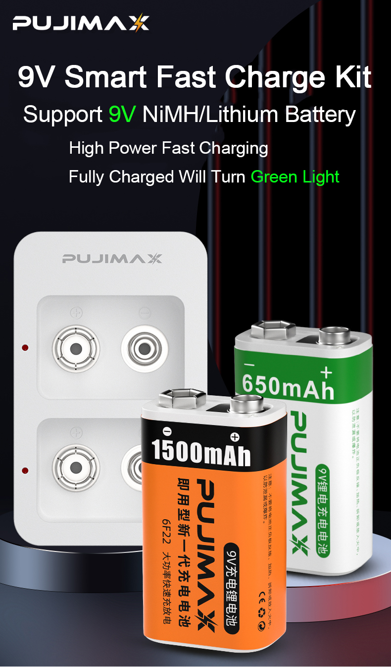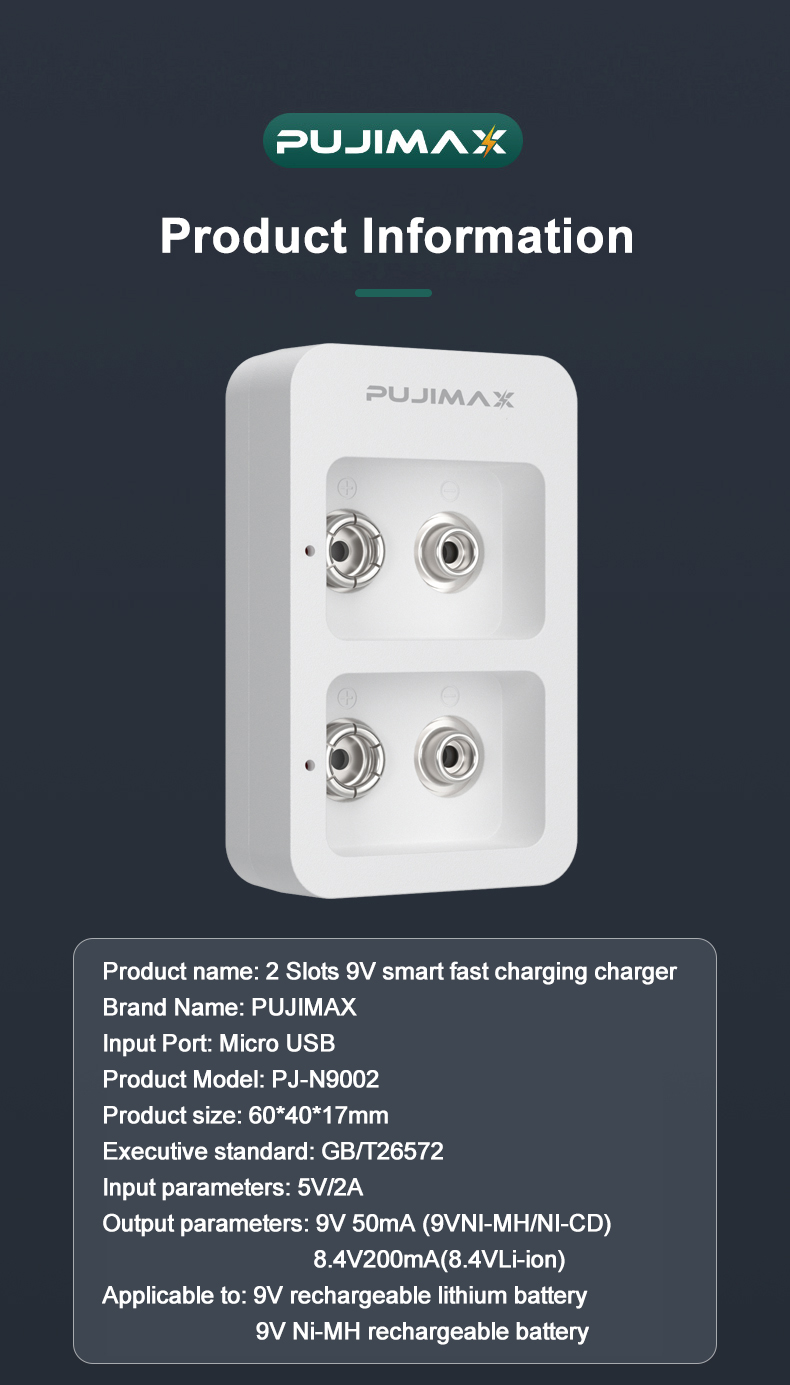 Feature 3 For 1-2pcs 9V Ni-MH/Ni-Cd/Li-ion rechargeable batteries.