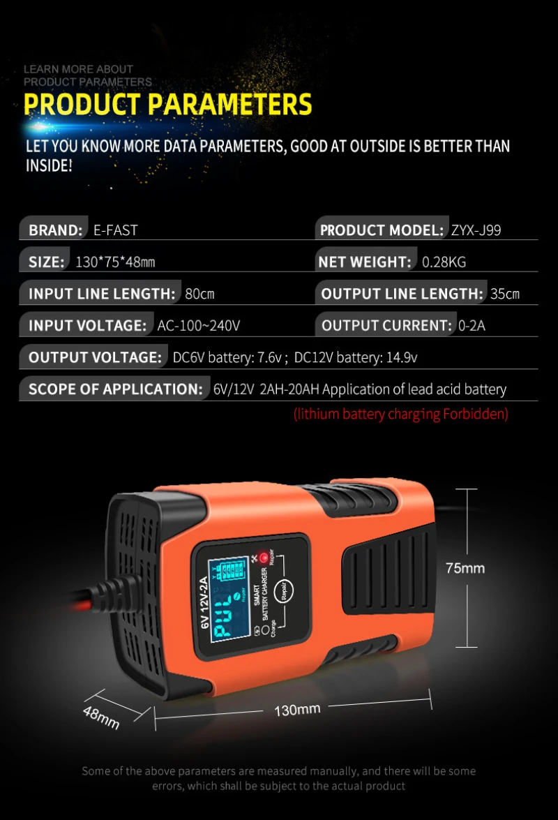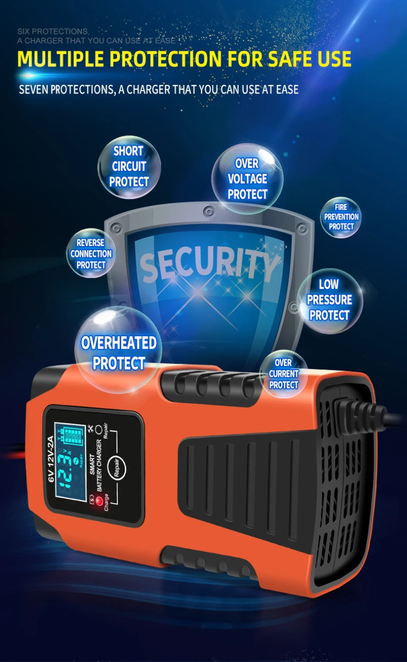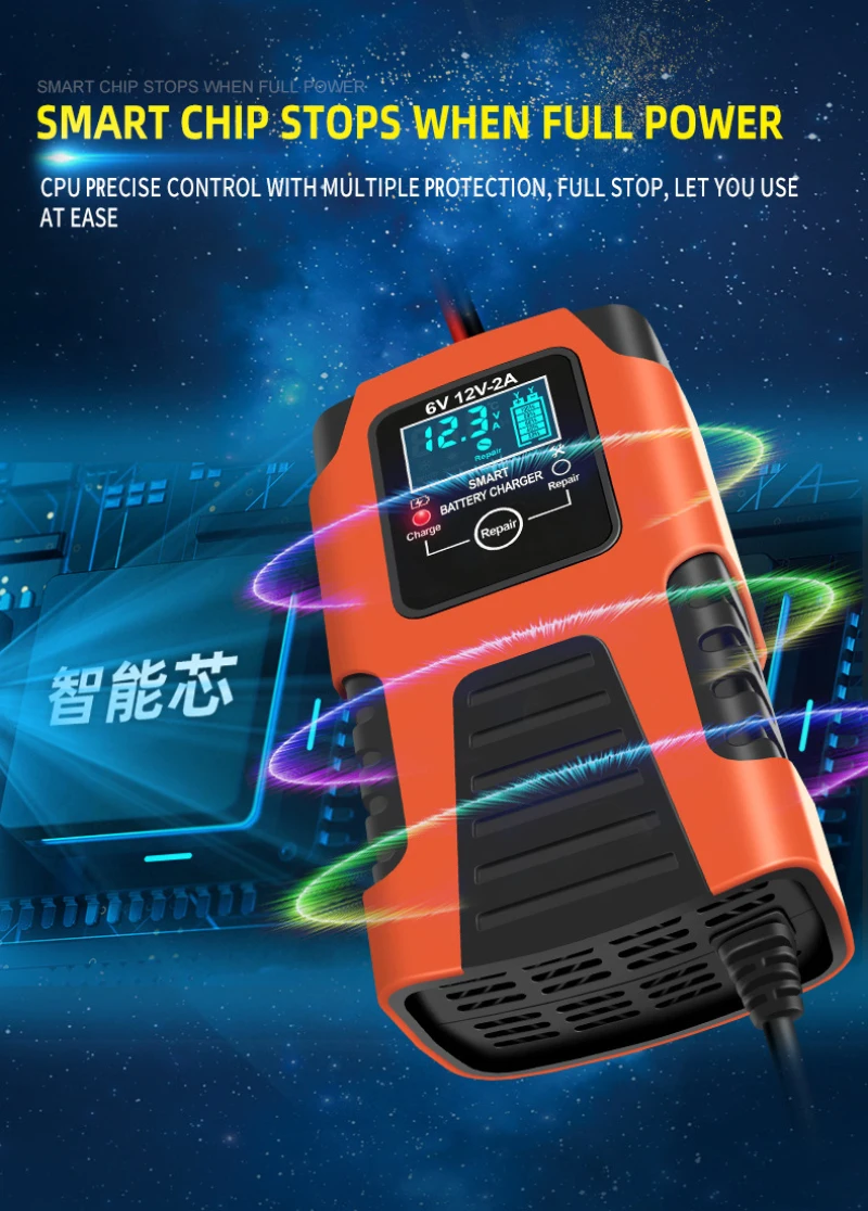 5. 3-ступенчатые зарядные устройства подходят для большинства типов аккумуляторов, включая кальциевые, гелевые и AGM, влажные аккумуляторы. Они также могут помочь восстановить разряженные и сульфатированные батареи.