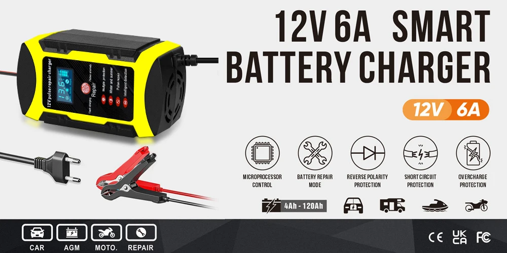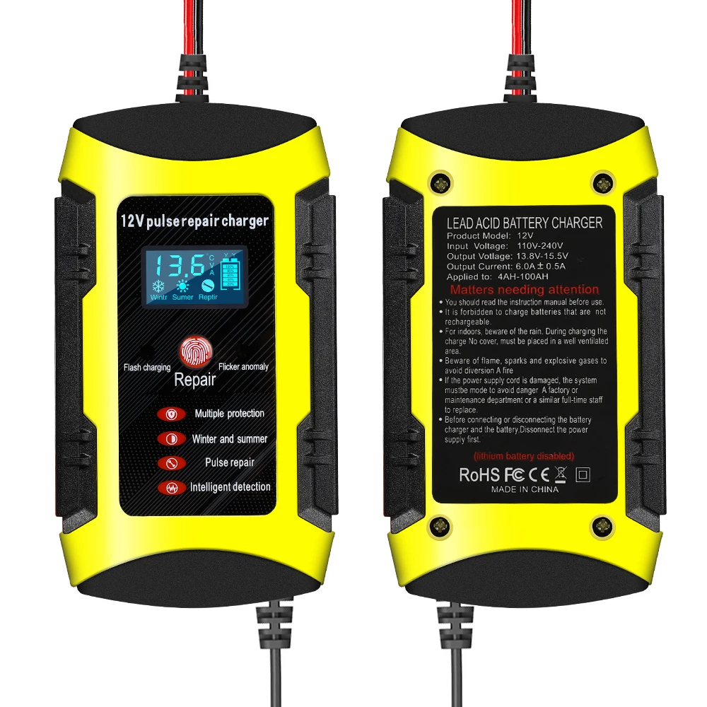Умное зарядное устройство для мотоцикла, автомобиля, с цифровым дисплеем, 6 А, 12 В