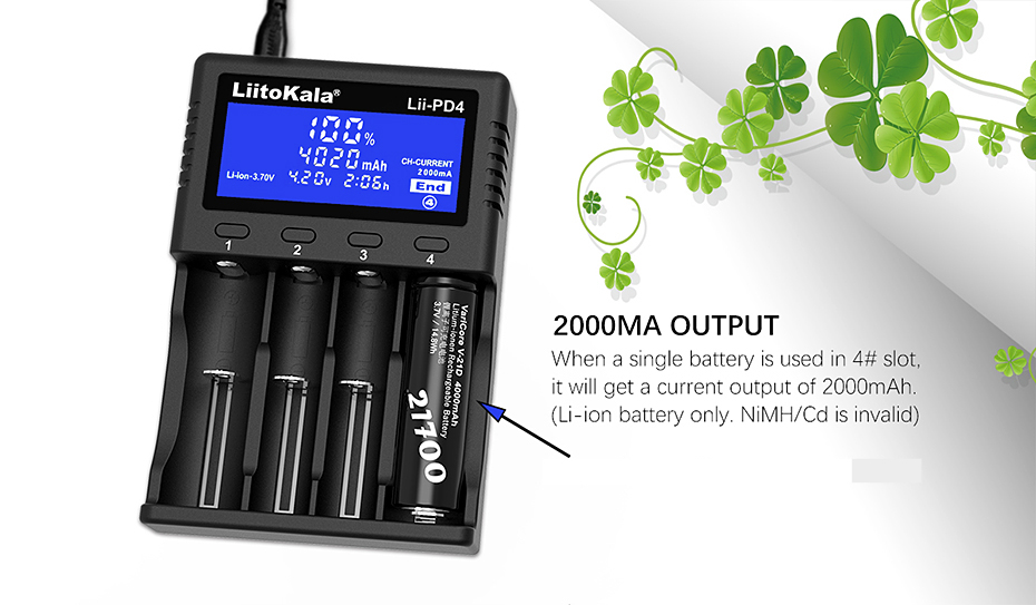 3. Выходной ток: li-ion/IMR/LiFePO4 2000mA * 1 (только для слота № 4),
