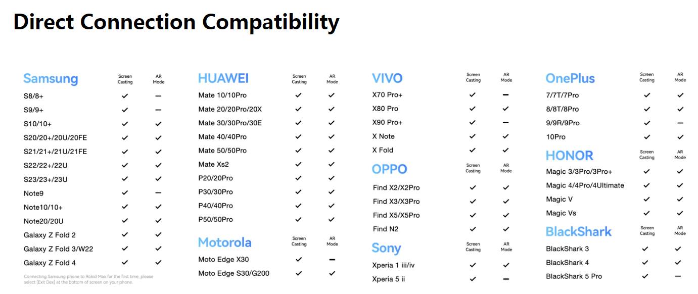 Советы: устройства Apple с портом Lightning или устройствами порта USB-C, но не в списке прямой совместимости, должны будут использовать очки с беспроводным адаптером.