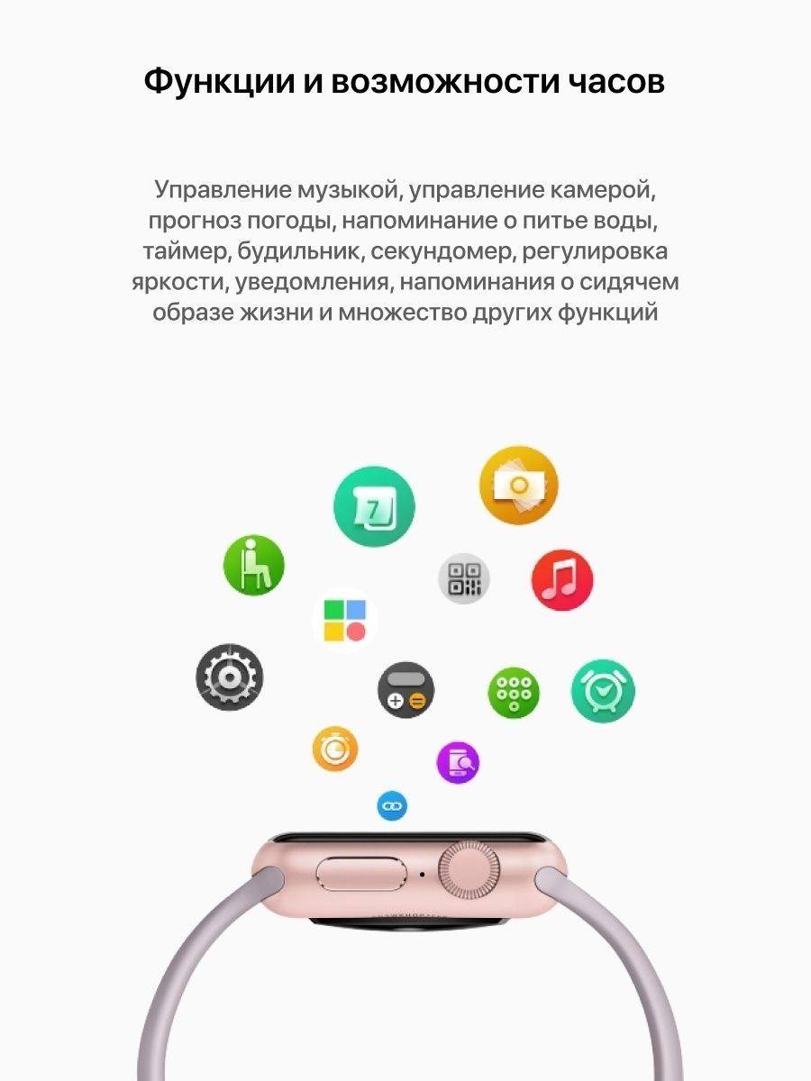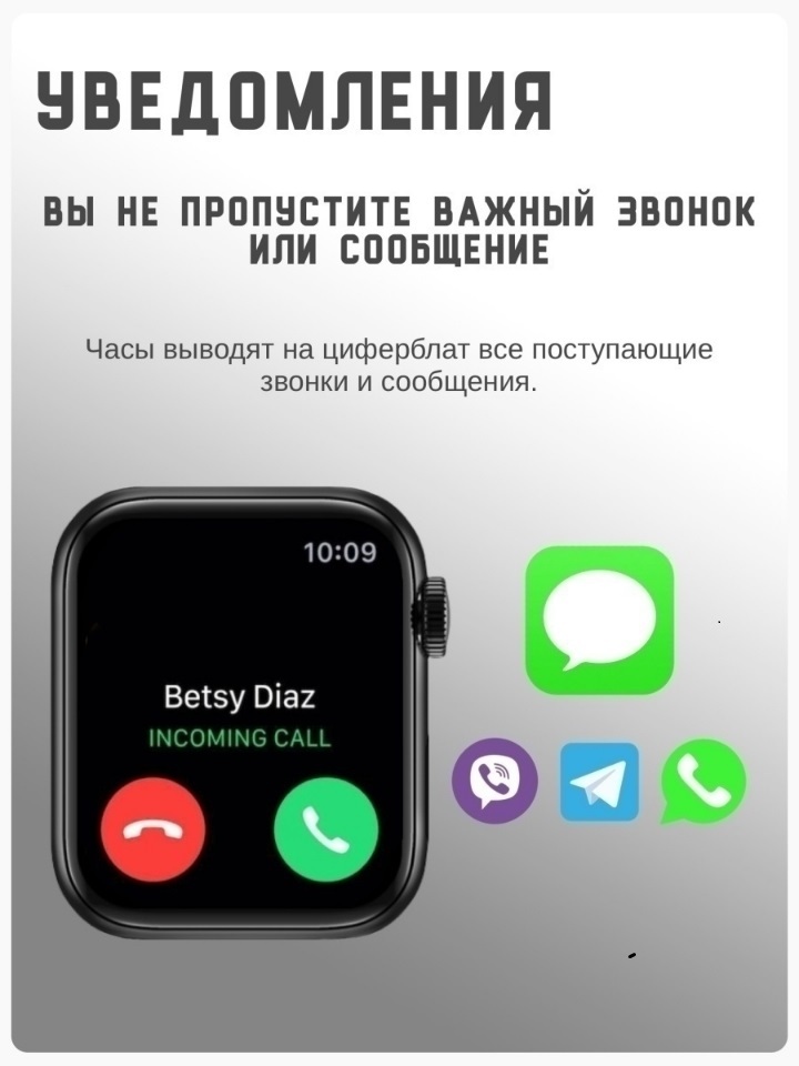 Очень удобно заряжать с помощью магнитной беспроводной зарядки! Смарт-часы смогут передать вам уведомления со всех популярных мессенджеров. Также в них встроены: будильник, шагомер, алгоритм сна, управление музыкой, датчик сердцебиения, давления, кислорода в крови. Основные функции: Bluetooth уведомления: короткие сообщения, информация из социальных сетей, различные напоминания, пульс, кровяное давление, кислород в крови, анализ усталости, шагомер: счетчик шагов, расход калорий, запись пробега, напоминание о малоподвижности: пришло время для физических упражнений и изменения нездорового образа жизни, мониторинг сна: объективно, научно и количественно записывайте и анализируйте состояние сна, напоминание о звонке: поддержка ответа на звонки.