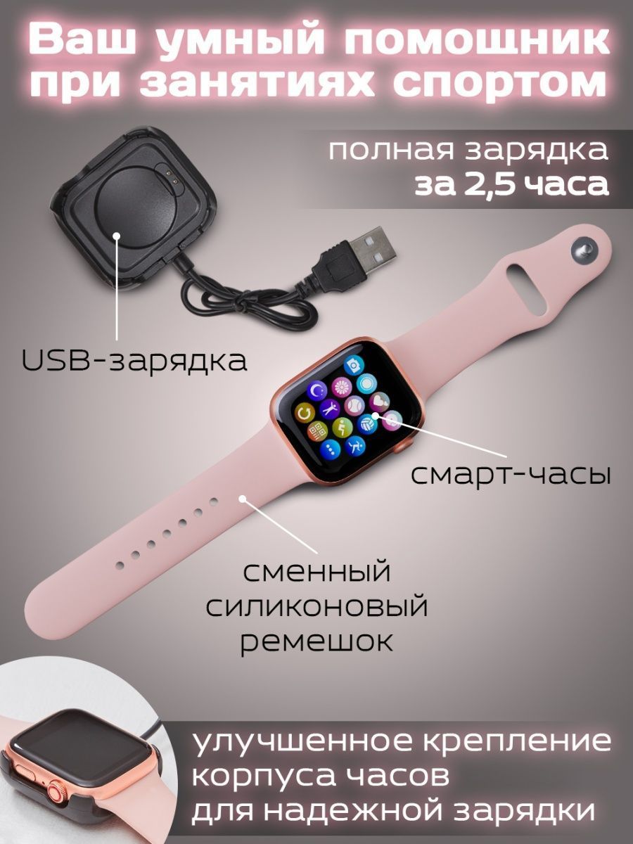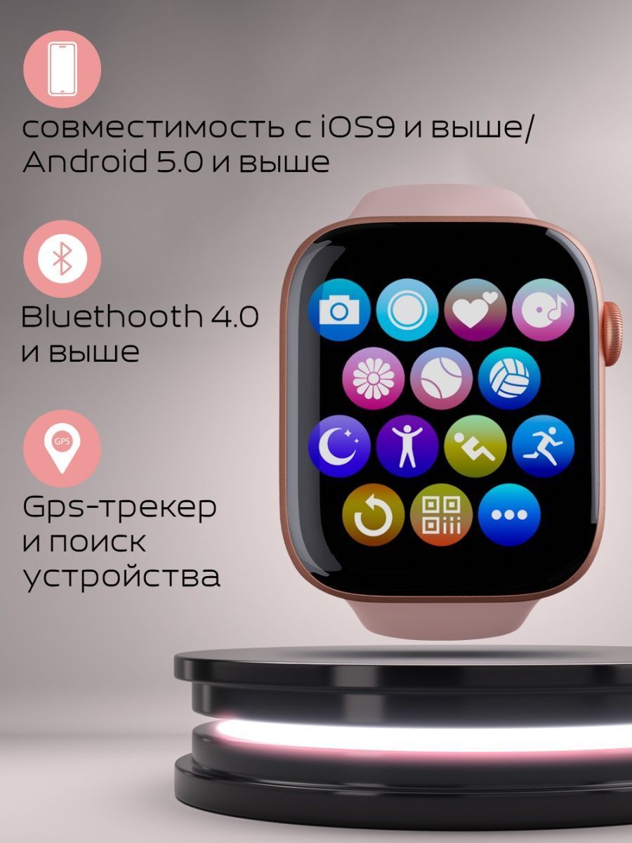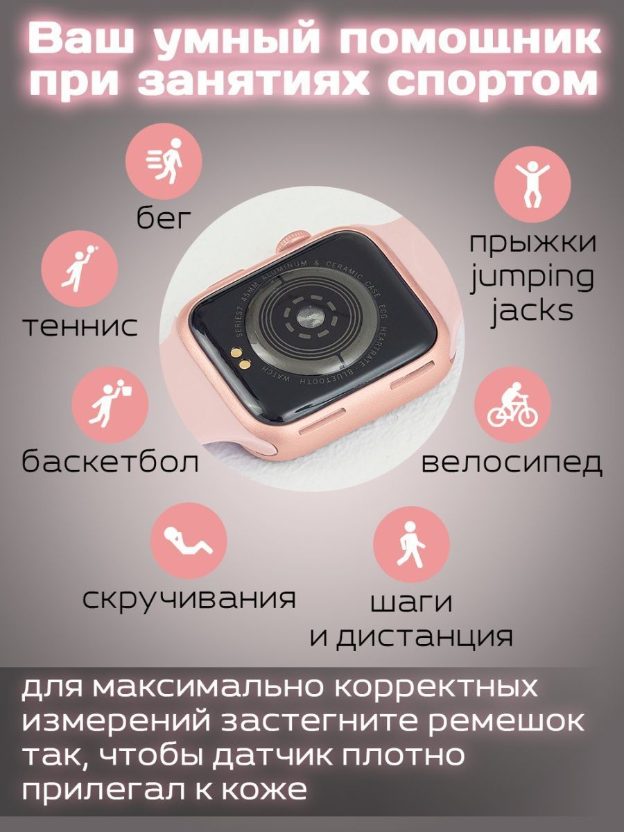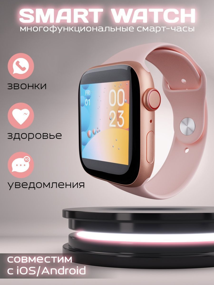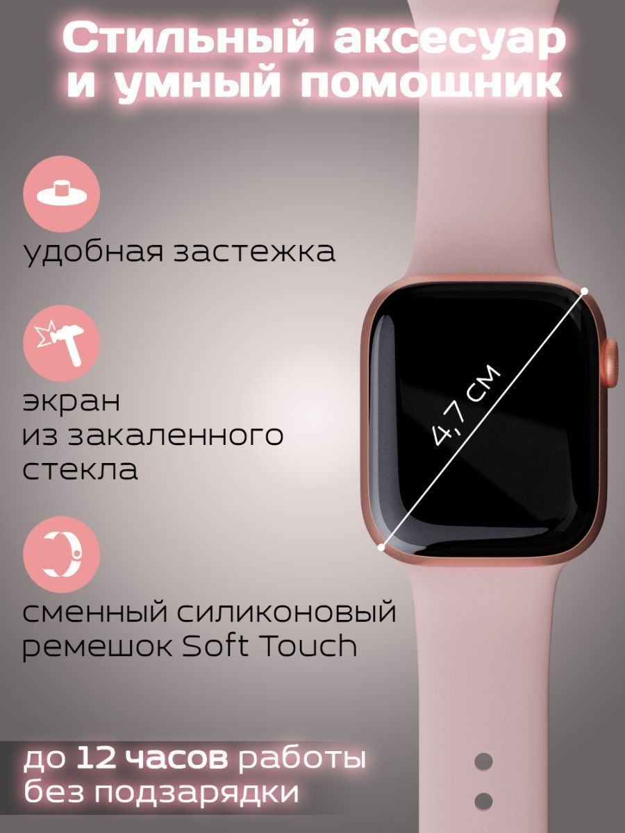 Умные часы 8 серии i8 Pro max; Smart Watch 8 Series Bluetooth (блютуз); Смарт часы мужские, женские, детские, 44 mm, розовые