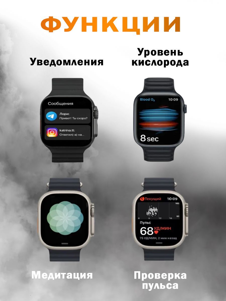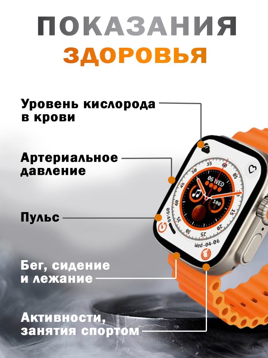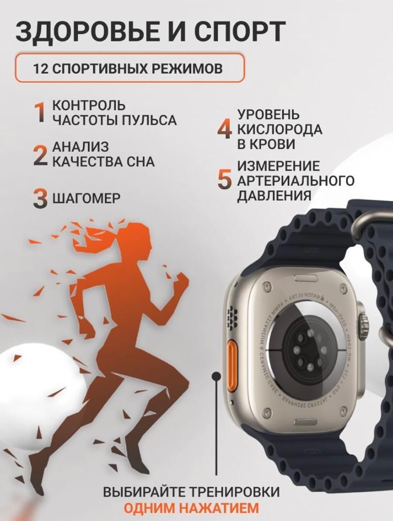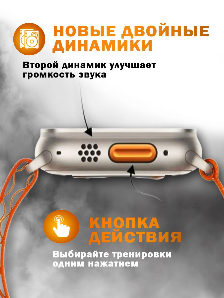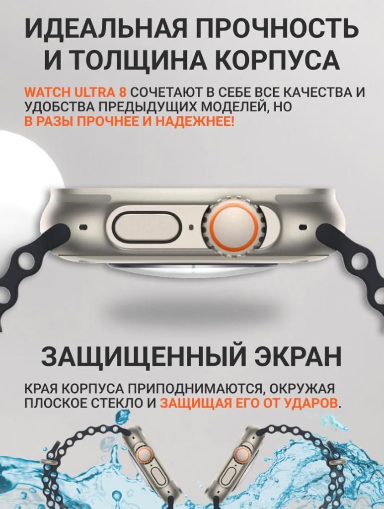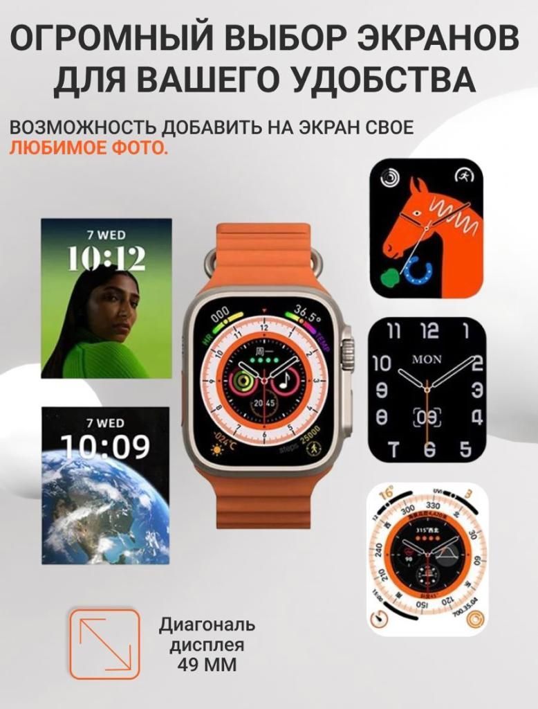 ВЫ можете с лёгкостью оформить возврат и МЫ ВЕРНЁМ ВАМ ДЕНЬГИ!!!ПреимуществоУмные часы Ultra - абсолютная новинка 2023 года! Самая последняя и актуальная модель смарт-часов 8 серии на 2023 год! Одни из самых популярных моделей на сегодняшний день. Превосходное качество товара, популярный узнаваемый - дорогой вид. Полная комплектация. Ударопрочное стекло, металл! Полный функционал. Умные смарт-часы Ultra - это достойный функциональный помощник в маленьком устройстве.