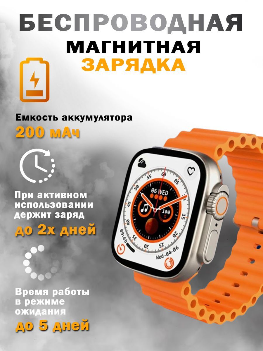 Умные часы 8 серии T800 Ultra; Smart Watch 8 Series Bluetooth (блютуз); Смарт часы мужские, женские, детские, 49 mm, оранжевые