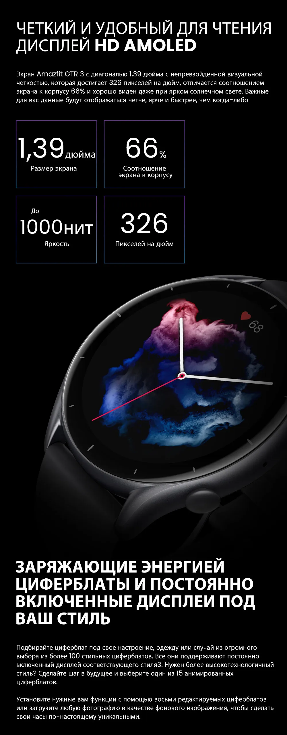 Умные часы Amazfit GTR 3 GTR3, 1,39 дюйма, AMOLED дисплей